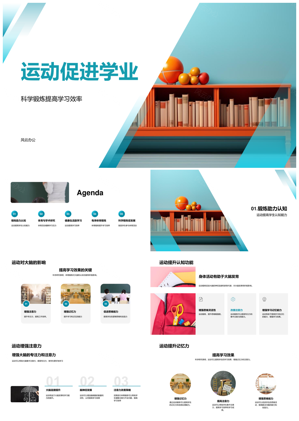风云办公提供的科学运动提升认知促进学业成绩PPT模板,下载格式为pptx,一共33页,作品中文字及图均可以修改和编辑,图片更改请在作品中右键图片并更换,文字修改请直接点击文字进行修改。