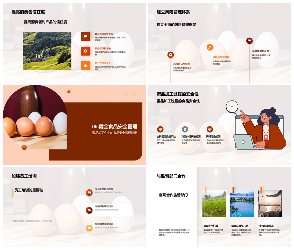 这是一张蛋品加工食品安全质量控制与风险管理PPT模板,包含蛋品加工、食品、安全、质量控制、风险管理等主题内容,也可用作蛋品加工食品安全质量控制、加工食品安全质量控制、食品安全质量控制、安全质量控制风险、质量控制风险管理、蛋品加工质量控制、加工食品质量控制、蛋品加工食品、加工食品安全、食品安全质量、安全质量控制、质量控制风险、控制风险管理、蛋品加工、食品安全等PPT场景使用。