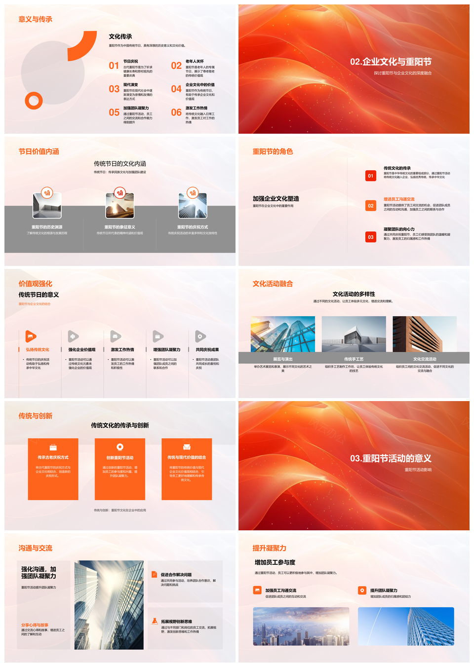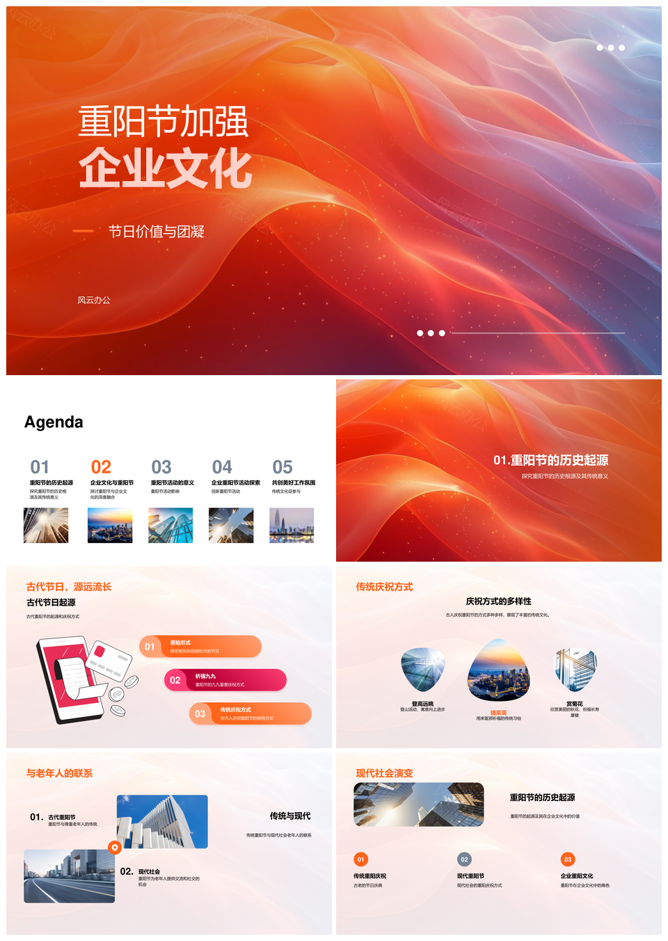 风云办公提供的重阳企业文化活动凝聚团队传承文化PPT模板,下载格式为pptx,一共33页,作品中文字及图均可以修改和编辑,图片更改请在作品中右键图片并更换,文字修改请直接点击文字进行修改。
