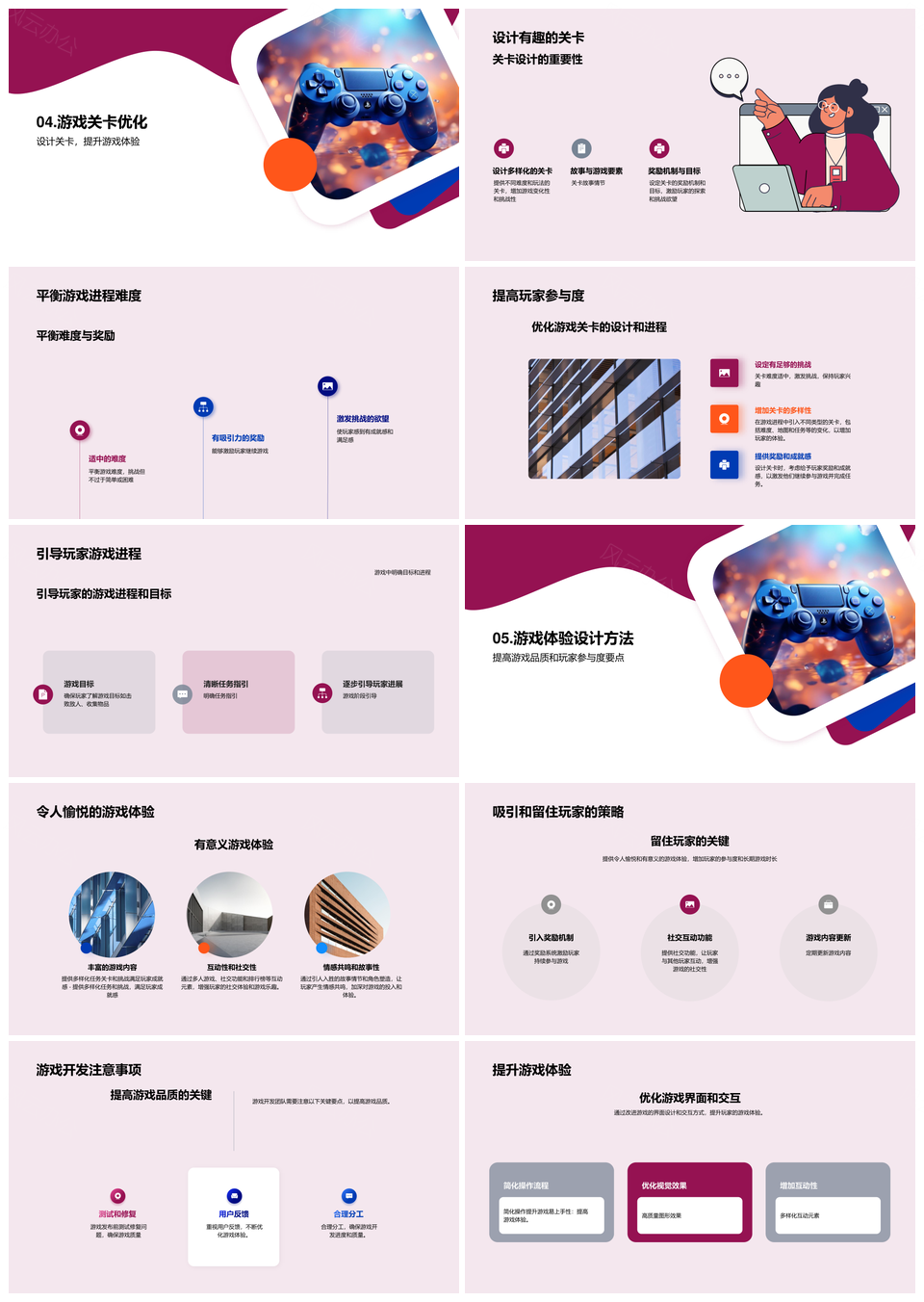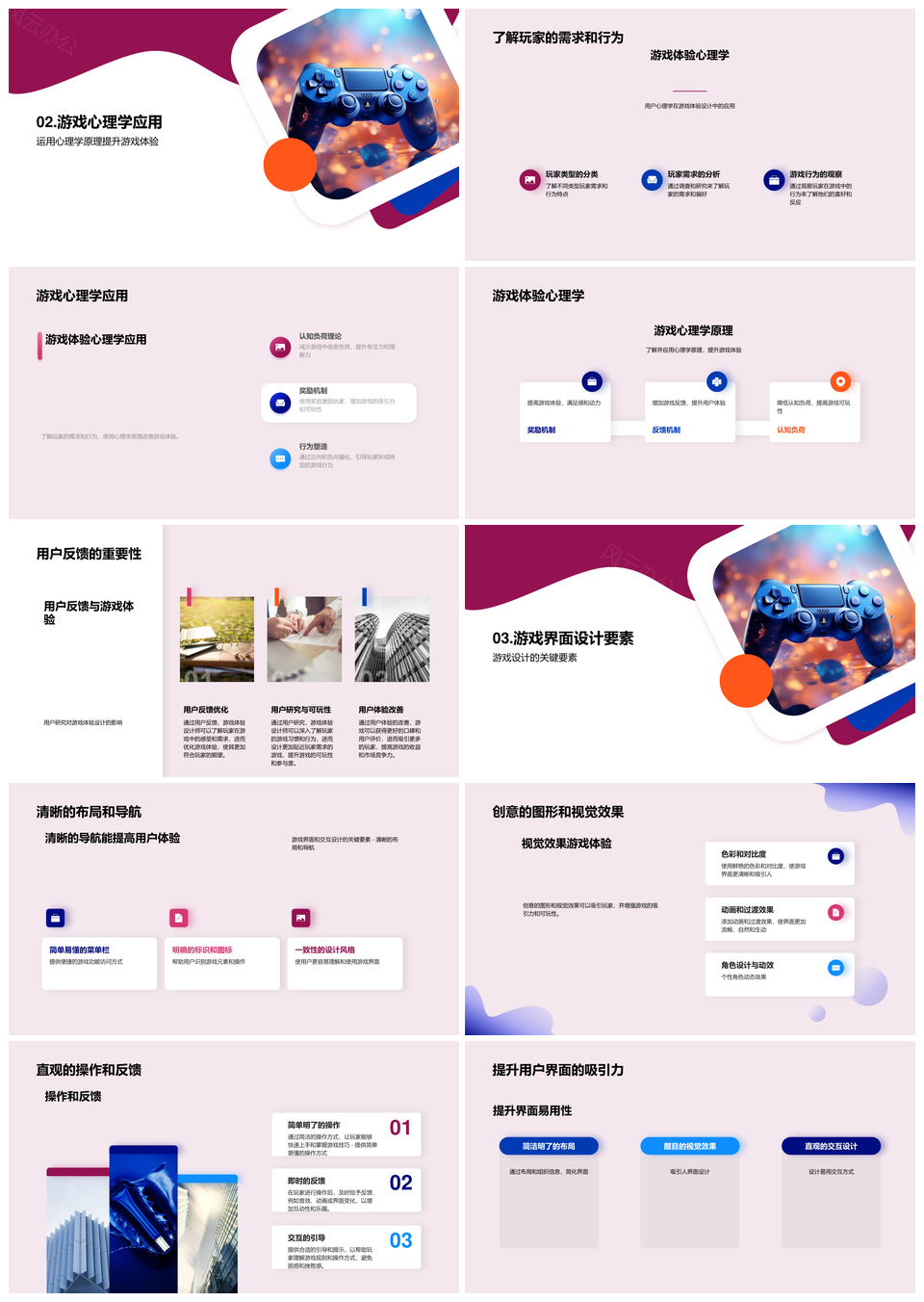 这是一张游戏体验设计心理视觉交互关卡控制PPT模板,包含游戏体验设计、心理、视觉、交互、关卡、控制等主题内容,也可用作游戏体验设计心理视觉交互关卡、游戏体验设计心理视觉交互、游戏体验设计心理视觉、游戏体验设计心理、游戏体验设计、体验设计心理视觉交互关卡、体验设计心理视觉交互、体验设计心理视觉、体验设计心理、设计心理视觉交互关卡控制、设计心理视觉交互关卡、设计心理视觉交互、心理视觉交互关卡控制、视觉交互关卡控制、交互关卡控制等PPT场景使用。