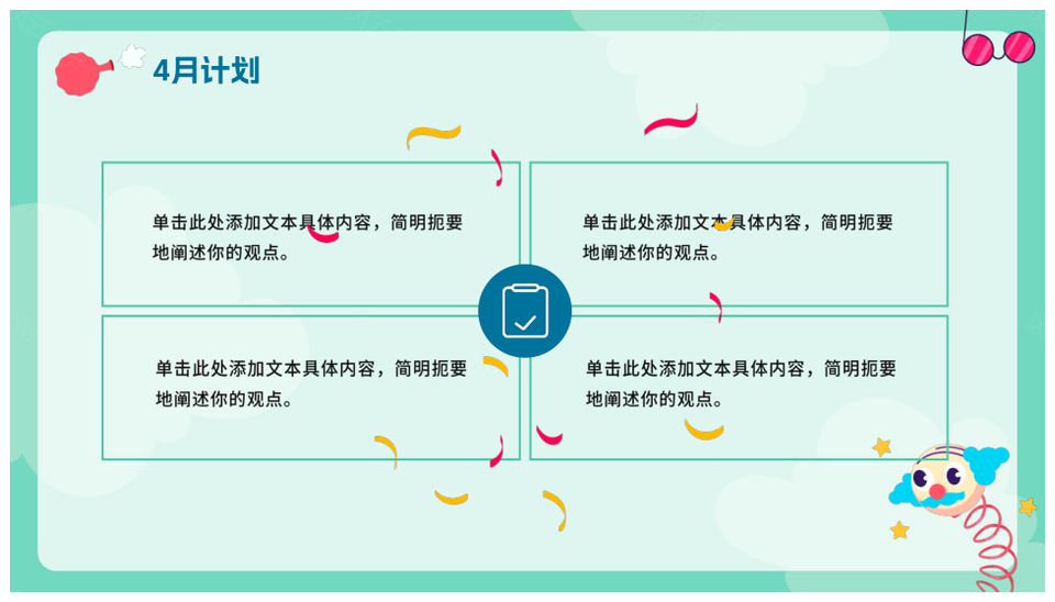 2025愚人节四月简约卡通手绘扁平工作计划PPT模板