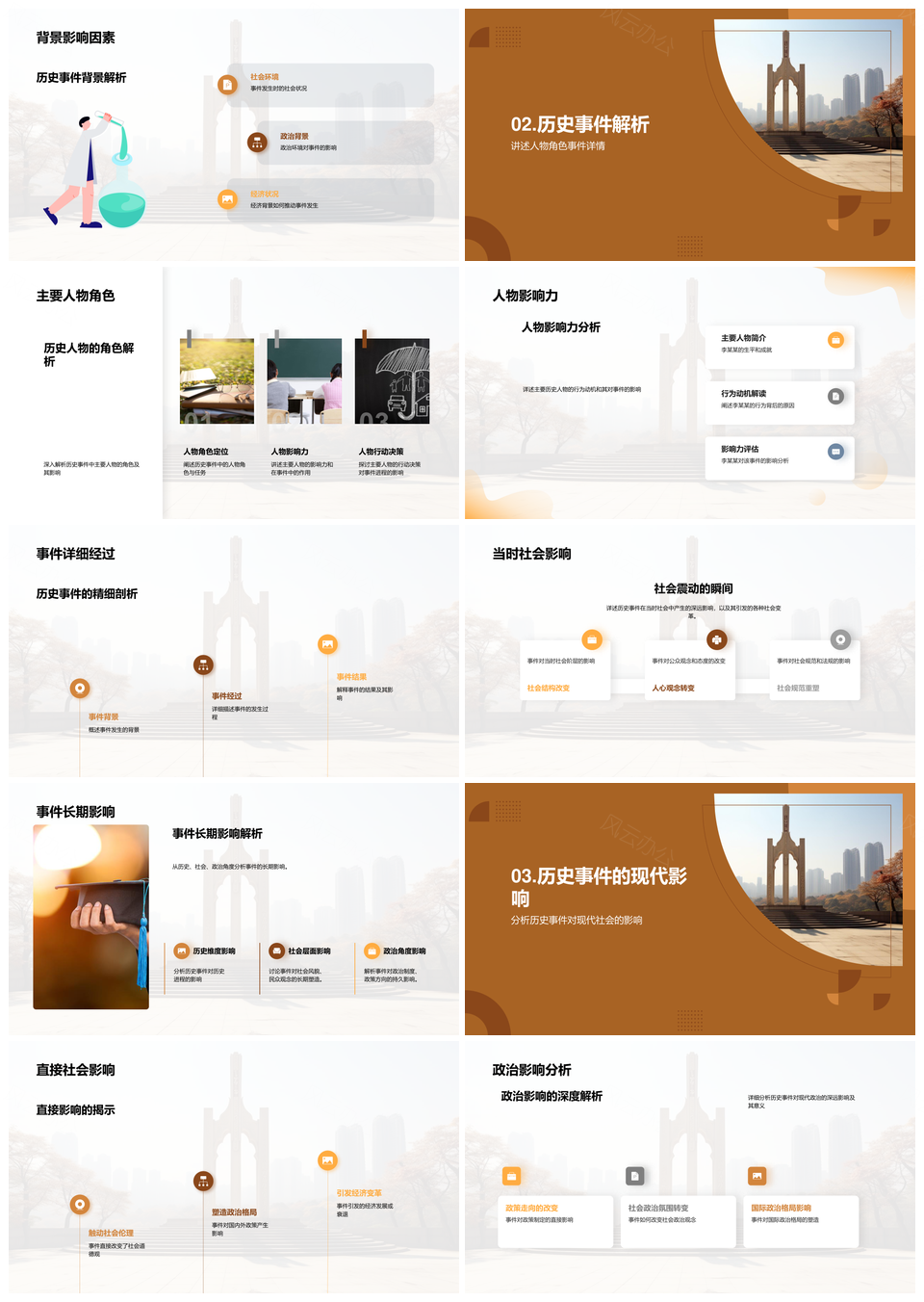 风云办公提供的历史镜鉴事件背景人物卷轴析因PPT模板,下载格式为pptx,一共33页,作品中文字及图均可以修改和编辑,图片更改请在作品中右键图片并更换,文字修改请直接点击文字进行修改。