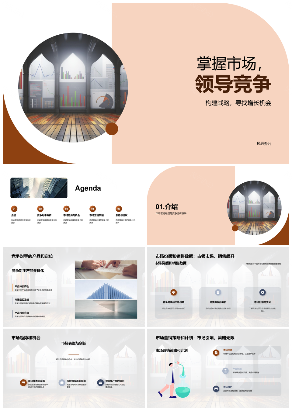风云办公提供的创新引领市场主导竞争分析策略PPT模板,下载格式为pptx,一共24页,作品中文字及图均可以修改和编辑,图片更改请在作品中右键图片并更换,文字修改请直接点击文字进行修改。