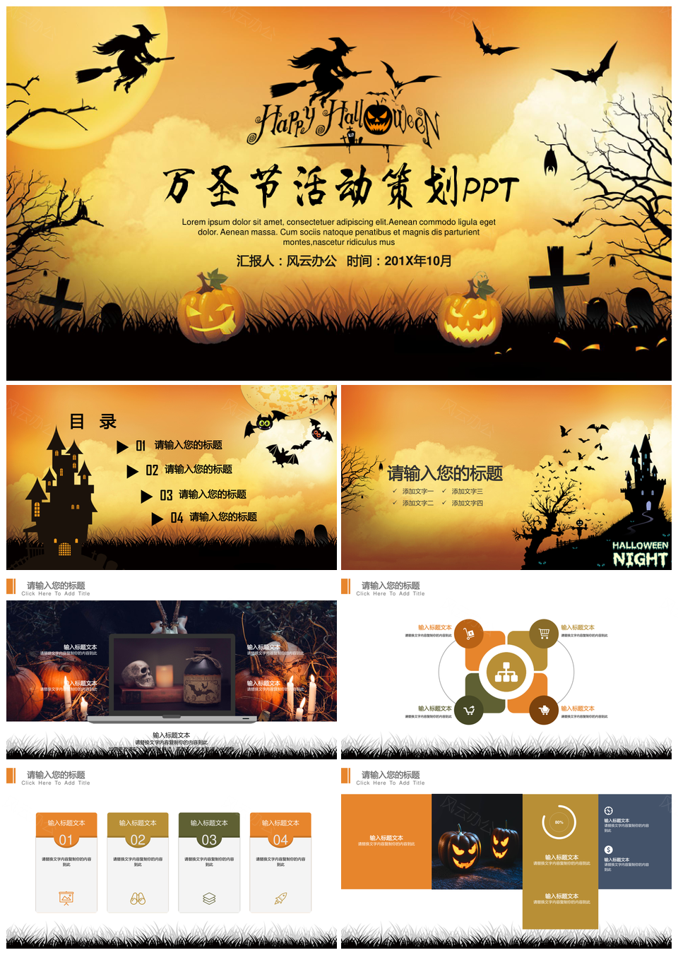 这是一张万圣节活动策划PPT模板,包含万圣节、活动、策划等主题内容,也可用作万圣节、活动、策划 万圣节活动策划、万圣节活动、活动策划等PPT场景使用。 风云办公提供的万圣节活动策划PPT模板,下载格式为pptx,一共24页,作品中文字及图均可以修改和编辑,图片更改请在作品中右键图片并更换,文字修改请直接点击文字进行修改。