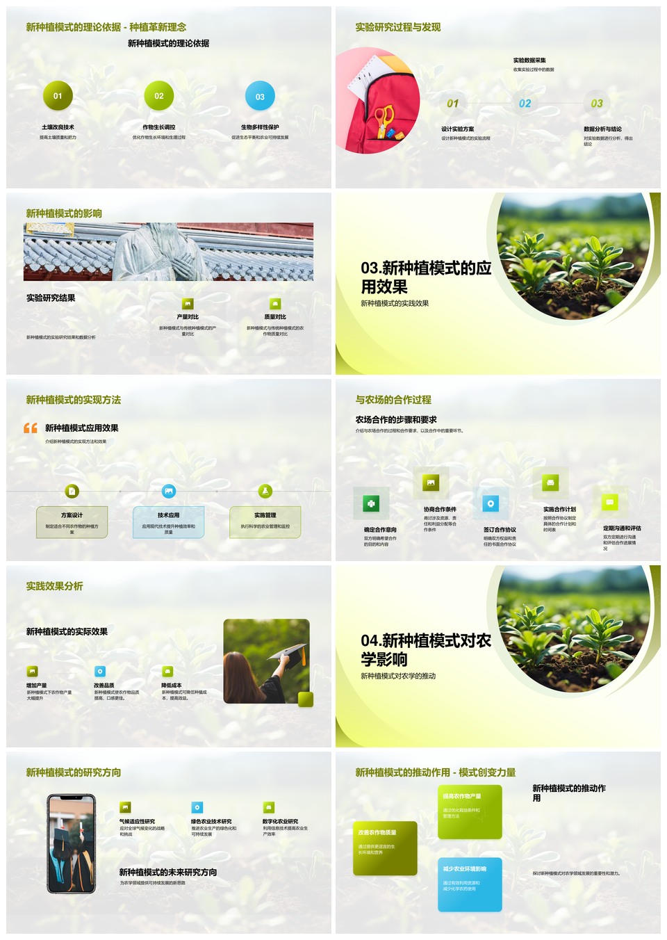 这是一张农学创新实践下新型种植模式对农田影响PPT模板,包含农学、创新、实践、新型、种植模式、农田、影响等主题内容,也可用作农学创新实践新型种植模式、创新实践新型种植模式农田、新型种植模式农田影响、农学创新实践新型、农学创新新型种植模式、创新实践新型农田、实践新型种植模式农田、农学创新农田影响、农学实践新型种植模式、创新实践农田影响、新型种植模式影响、创新种植模式农田影响、农学创新实践、创新实践新型、实践新型种植模式等PPT场景使用。 风云办公提供的农学创新实践下新型种植模式对农田影响PPT模板,下载格式为pptx,一共23页,作品中文字及图均可以修改和编辑,图片更改请在作品中右键图片并更换,文字修改请直接点击文字进行修改。