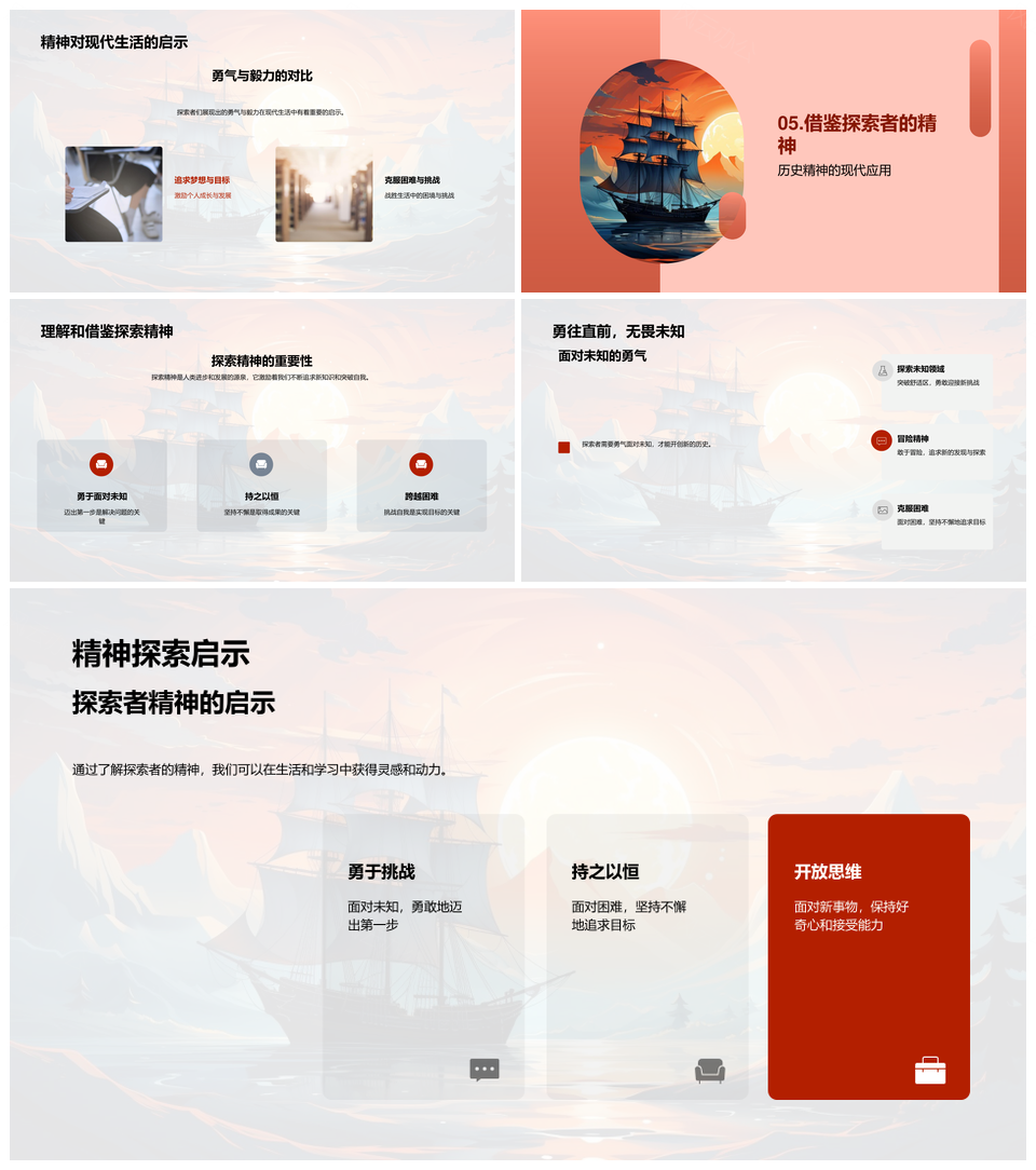 这是一张大航海时代探索者勇气驱动全球经贸科技文化PPT模板,包含大航海时代、探索者、勇气、驱动、全球、经贸、科技、文化等主题内容,也可用作大航海时代探索者勇气驱动、探索者勇气驱动全球、勇气驱动全球经贸、驱动全球经贸科技、全球经贸科技文化、大航海时代探索者勇气、探索者勇气驱动、勇气驱动全球、驱动全球经贸、全球经贸科技、经贸科技文化、大航海时代探索者、探索者勇气、勇气驱动、驱动全球等PPT场景使用。 风云办公提供的大航海时代探索者勇气驱动全球经贸科技文化PPT模板,下载格式为pptx,一共23页,作品中文字及图均可以修改和编辑,图片更改请在作品中右键图片并更换,文字修改请直接点击文字进行修改。