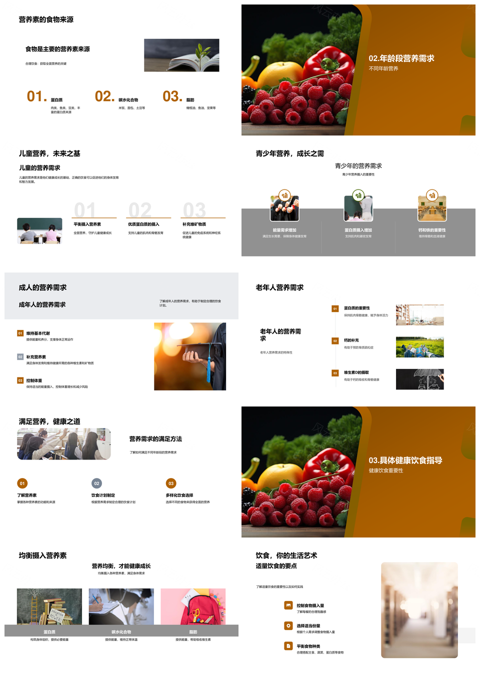 这是一张全龄营养饮食健康生活果蔬指南PPT模板,包含全龄、营养、饮食、健康、生活、果蔬、指南等主题内容,也可用作全龄营养饮食健康、营养饮食健康生活、饮食健康生活果蔬、健康生活果蔬指南、全龄营养饮食、营养饮食健康、饮食健康生活、健康生活果蔬、生活果蔬指南、全龄营养、营养饮食、饮食健康、健康生活、生活果蔬、果蔬指南等PPT场景使用。