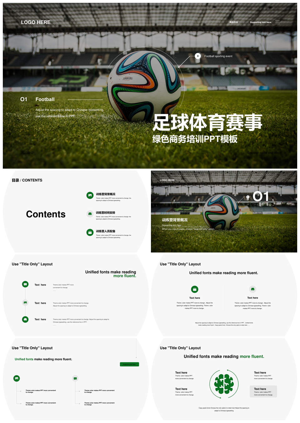 这是一张绿色科技足球赛事运动场地策划PPT模板,包含绿色科技、足球赛事、运动场地、策划等主题内容,也可用作绿色科技足球赛事运动场地策划、绿色科技足球赛事运动场地、绿色科技足球赛事策划、绿色科技运动场地策划、足球赛事运动场地策划、绿色科技足球赛事、绿色科技运动场地、足球赛事运动场地、运动场地策划、绿色科技策划、足球赛事策划、科技足球赛事、足球运动场地、赛事运动场地策划、绿色策划等PPT场景使用。