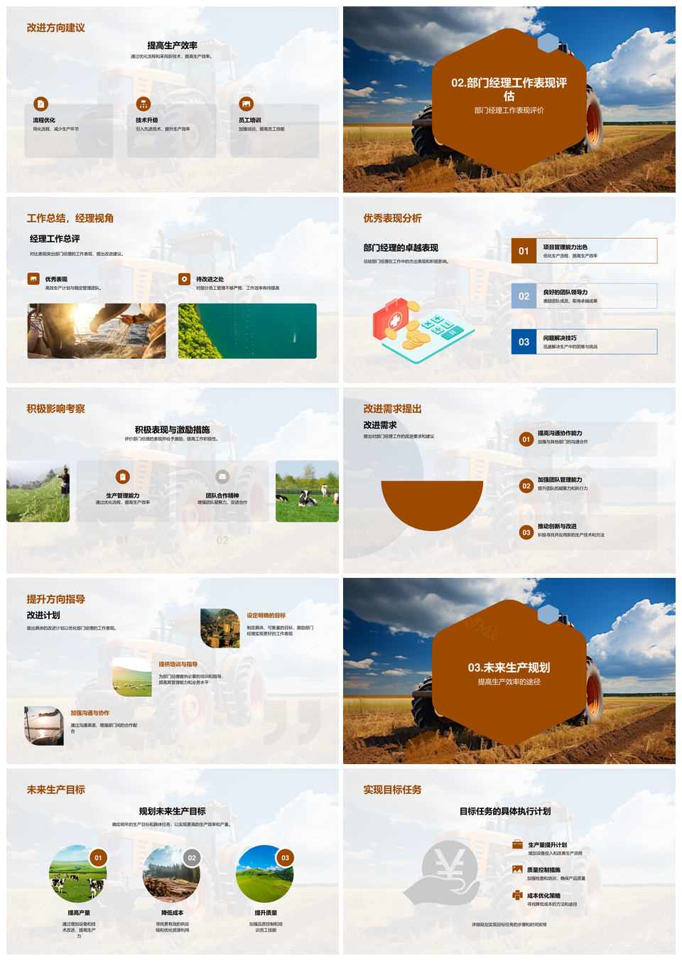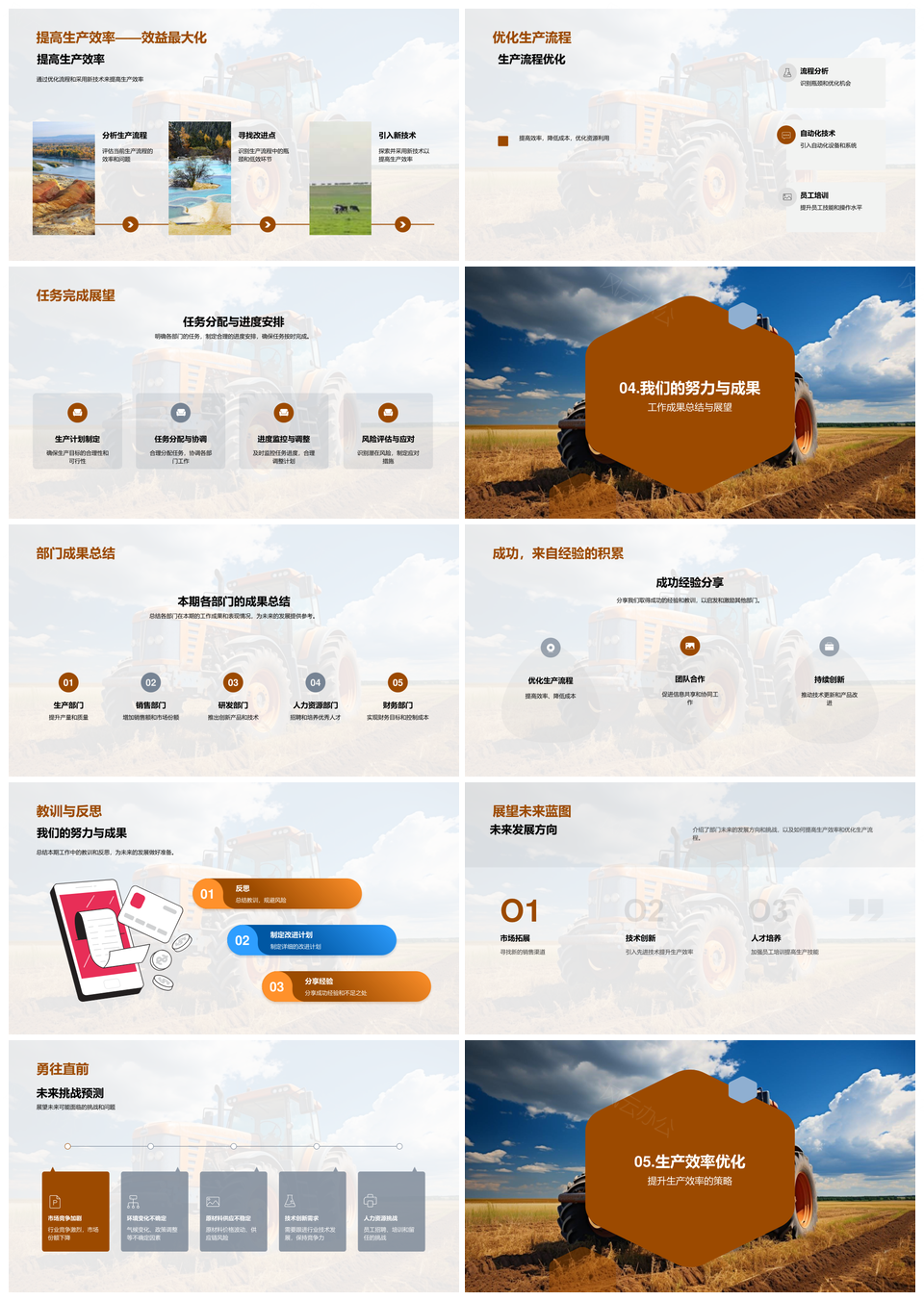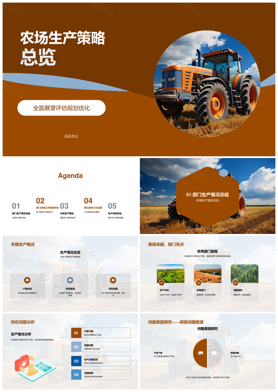 风云办公提供的农场生产策略总结与未来效率优化PPT模板,下载格式为pptx,一共33页,作品中文字及图均可以修改和编辑,图片更改请在作品中右键图片并更换,文字修改请直接点击文字进行修改。