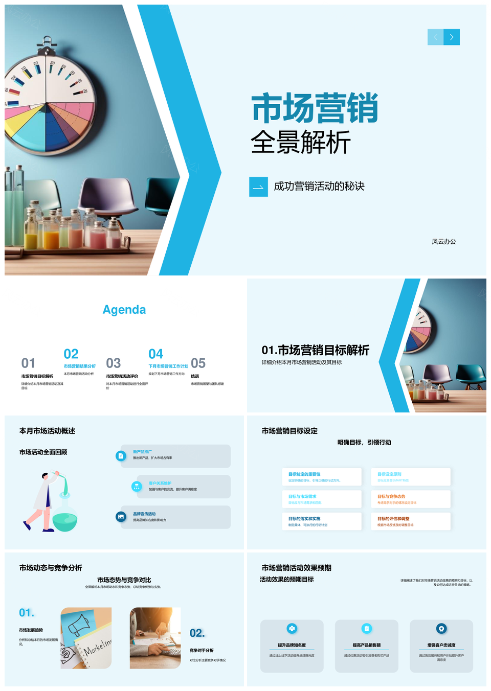 风云办公提供的市场营销战略成效案例数据全景解析PPT模板,下载格式为pptx,一共27页,作品中文字及图均可以修改和编辑,图片更改请在作品中右键图片并更换,文字修改请直接点击文字进行修改。