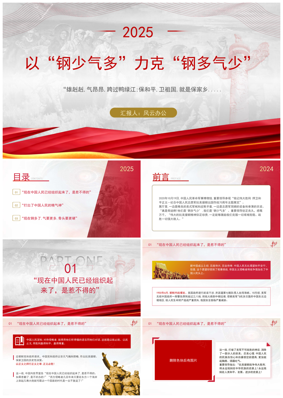 风云办公提供的2025钢少气多对决钢多气少党课PPT模板,下载格式为pptx,一共16页,作品中文字及图均可以修改和编辑,图片更改请在作品中右键图片并更换,文字修改请直接点击文字进行修改。