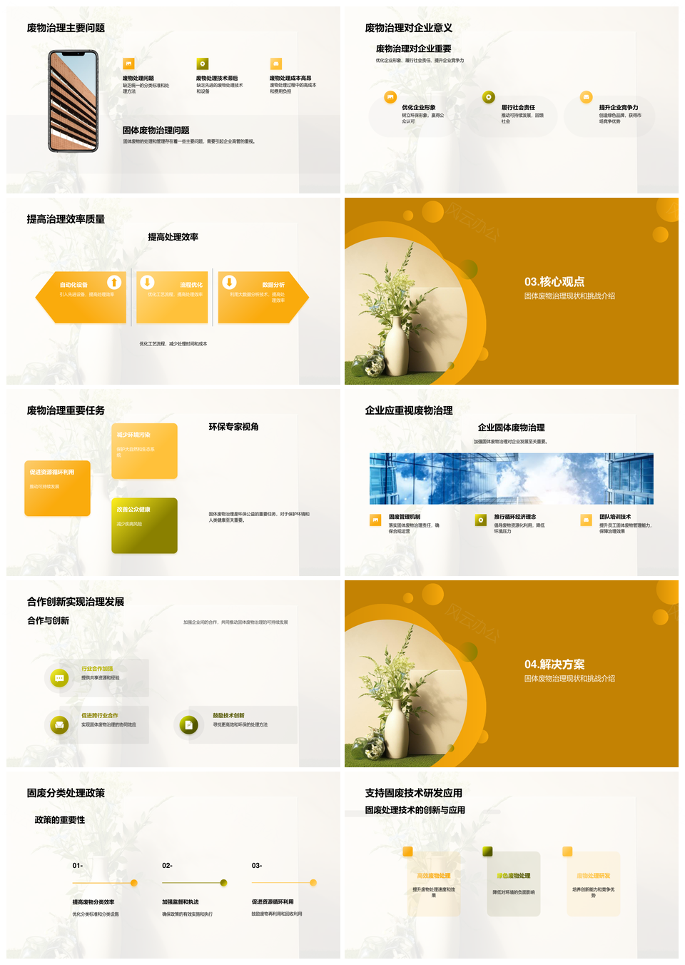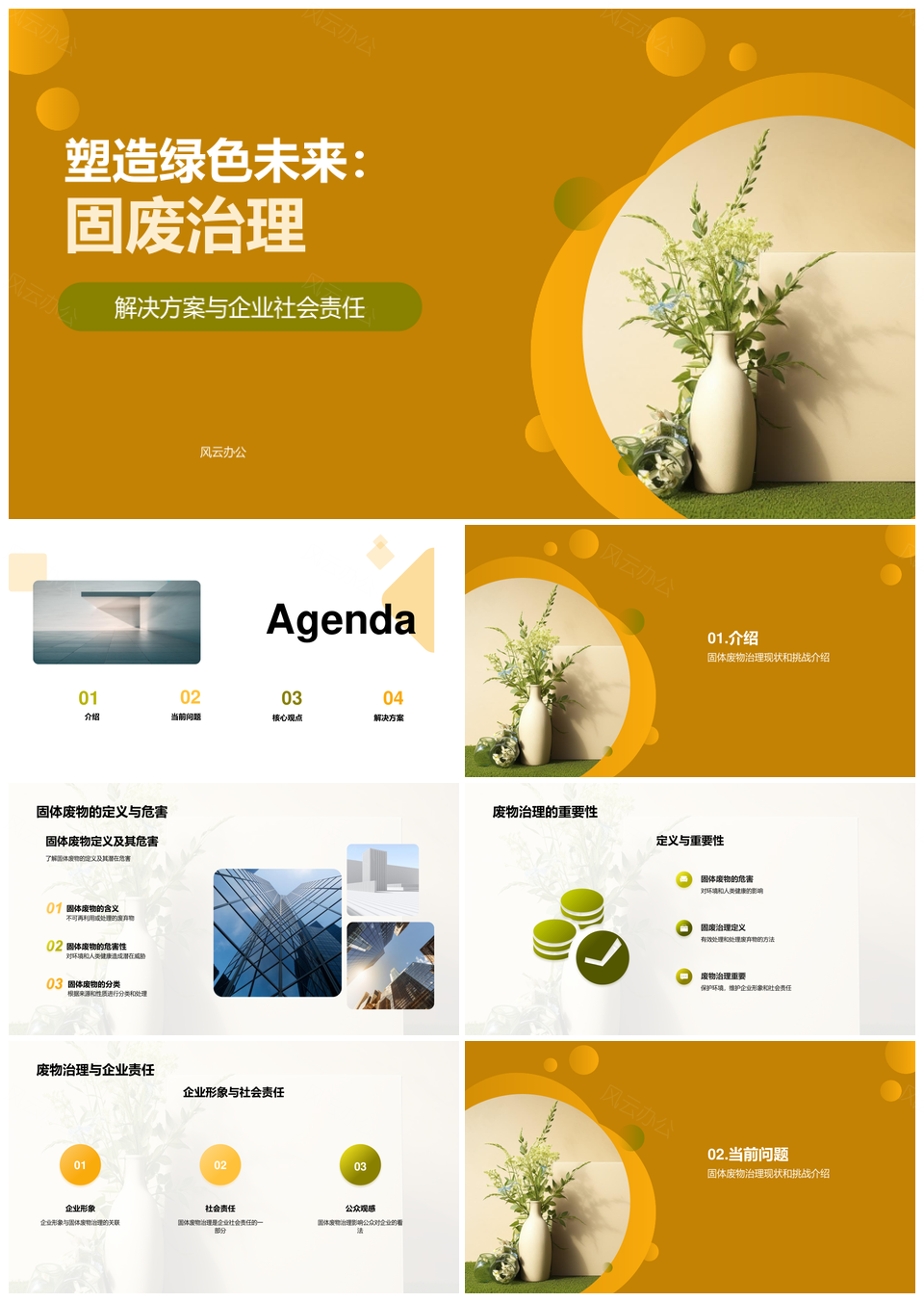 风云办公提供的固体废物治理现状挑战专家企业共治PPT模板,下载格式为pptx,一共19页,作品中文字及图均可以修改和编辑,图片更改请在作品中右键图片并更换,文字修改请直接点击文字进行修改。