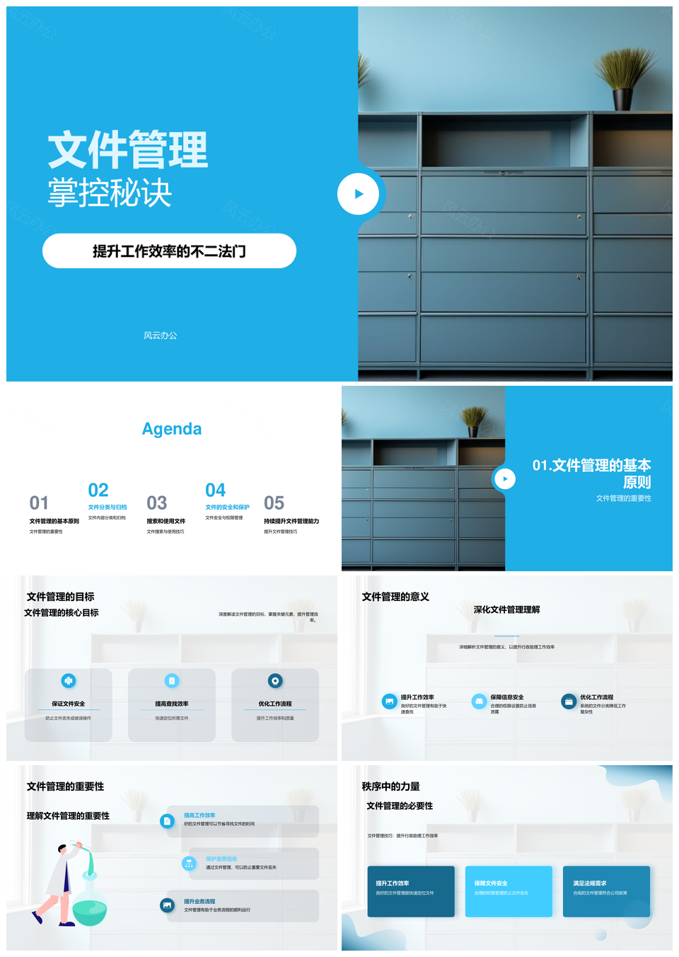 风云办公提供的高效文件管理分类归档搜索秘诀PPT模板,下载格式为pptx,一共33页,作品中文字及图均可以修改和编辑,图片更改请在作品中右键图片并更换,文字修改请直接点击文字进行修改。
