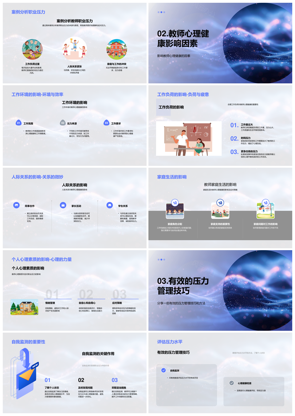 这是一张教师职业压力工作家庭心理健康管理PPT模板,包含教师、职业、压力、工作、家庭、心理健康、管理等主题内容,也可用作教师职业压力管理、职业压力工作家庭、工作家庭心理健康管理、教师职业工作家庭、家庭心理健康管理教师、心理健康管理教师职业、教师工作家庭压力、职业家庭心理健康管理、心理健康管理压力、工作家庭压力管理、教师心理健康管理、职业压力管理、工作家庭压力、心理健康管理、家庭管理等PPT场景使用。