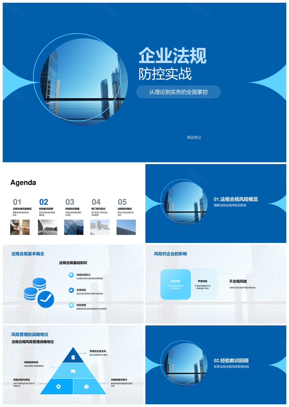 风云办公提供的企业法规风控内审合规防控实战PPT模板,下载格式为pptx,一共23页,作品中文字及图均可以修改和编辑,图片更改请在作品中右键图片并更换,文字修改请直接点击文字进行修改。