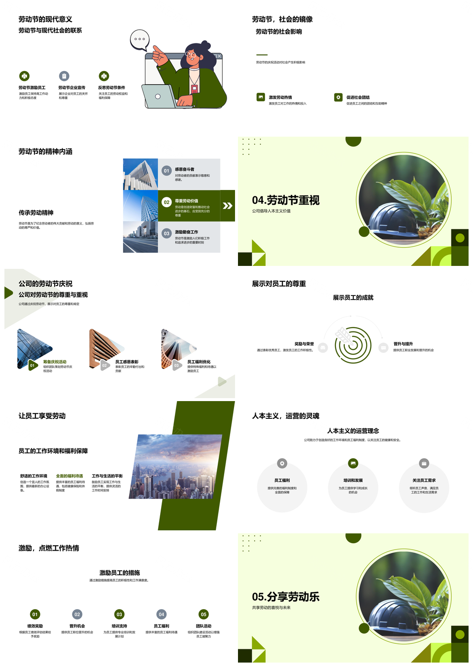 劳动节公司发展员工贡献薪酬福利关怀个人发展晋升共享成果PPT模板