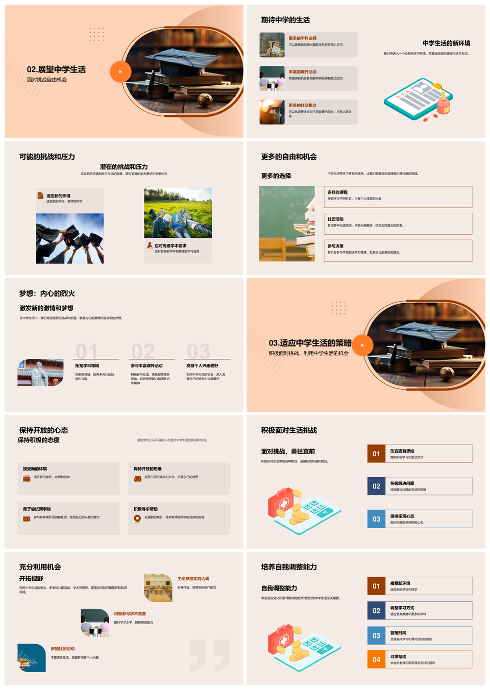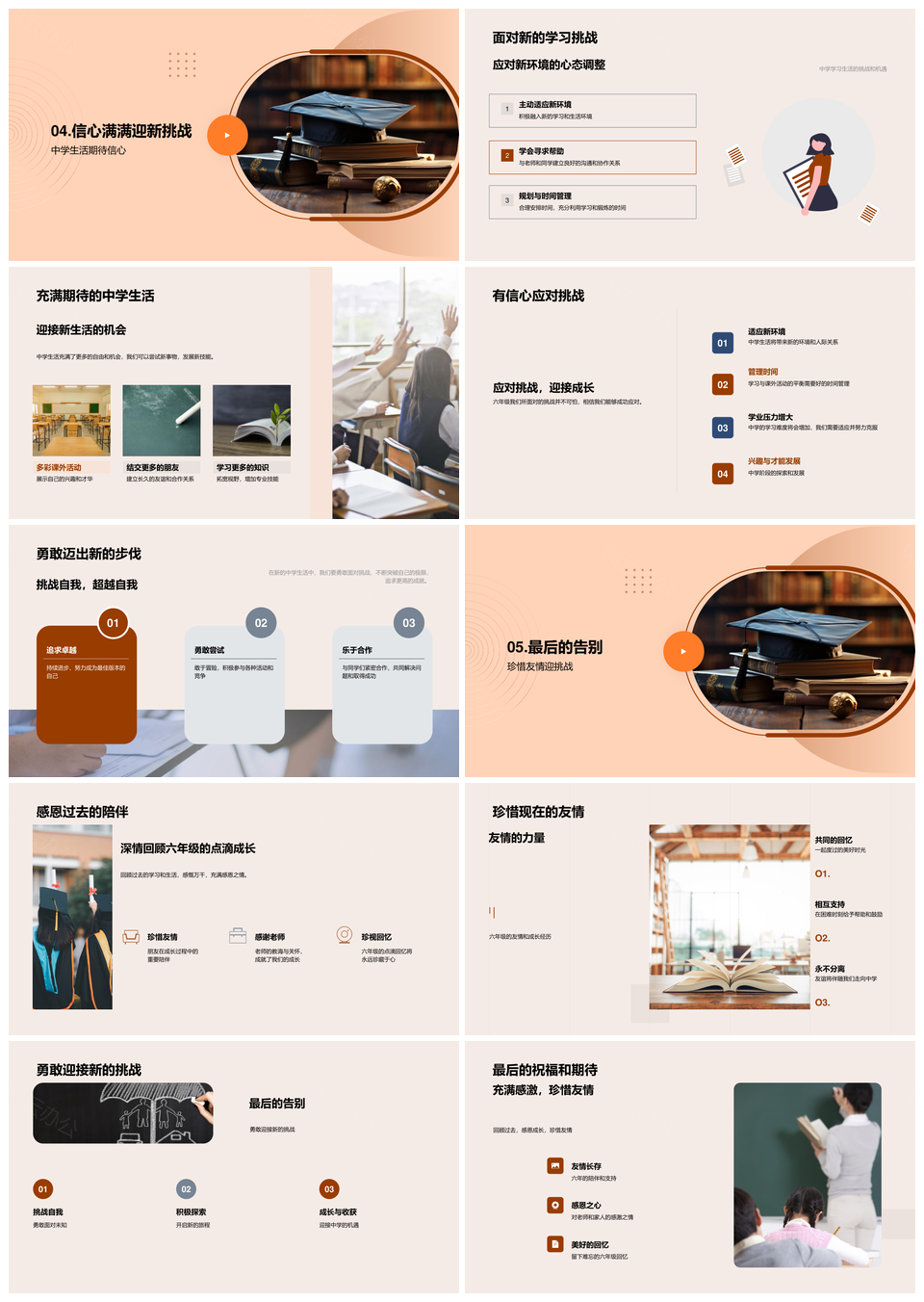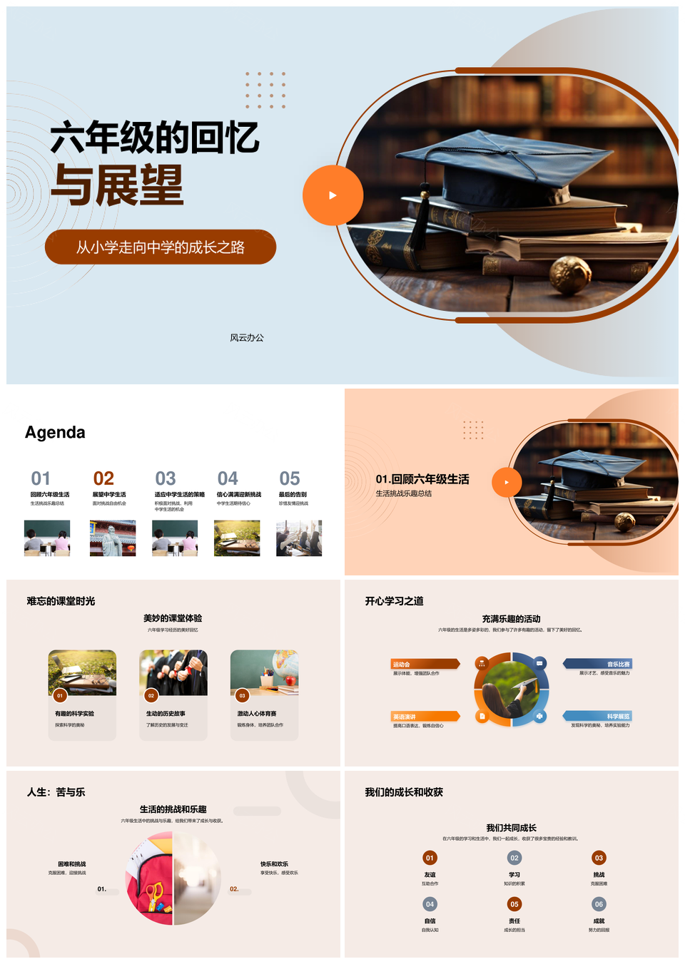 风云办公提供的六年级成长忆中学挑战迎新征程PPT模板,下载格式为pptx,一共28页,作品中文字及图均可以修改和编辑,图片更改请在作品中右键图片并更换,文字修改请直接点击文字进行修改。