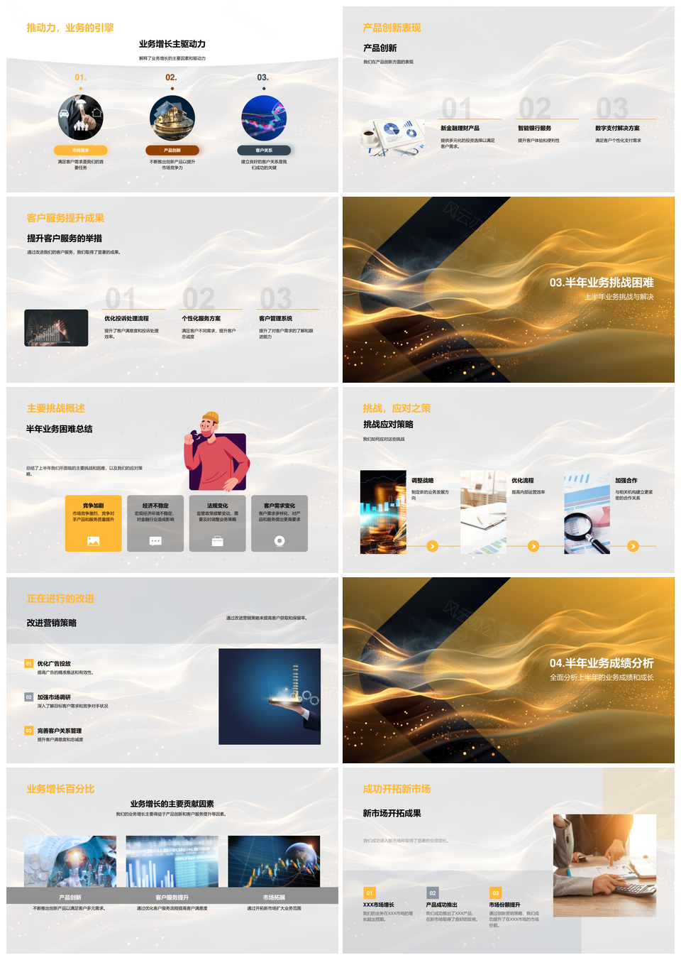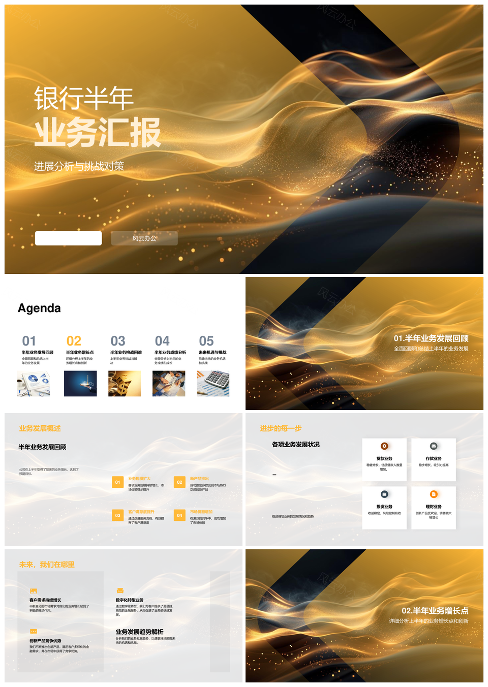 风云办公提供的银行半年业务增长创新与挑战对策分析PPT模板,下载格式为pptx,一共23页,作品中文字及图均可以修改和编辑,图片更改请在作品中右键图片并更换,文字修改请直接点击文字进行修改。
