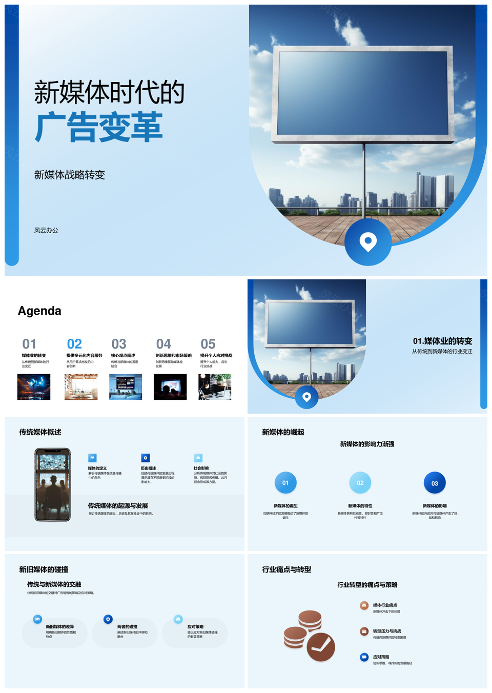 新媒体战略转变驱动传统媒体广告模式革新PPT模板推荐