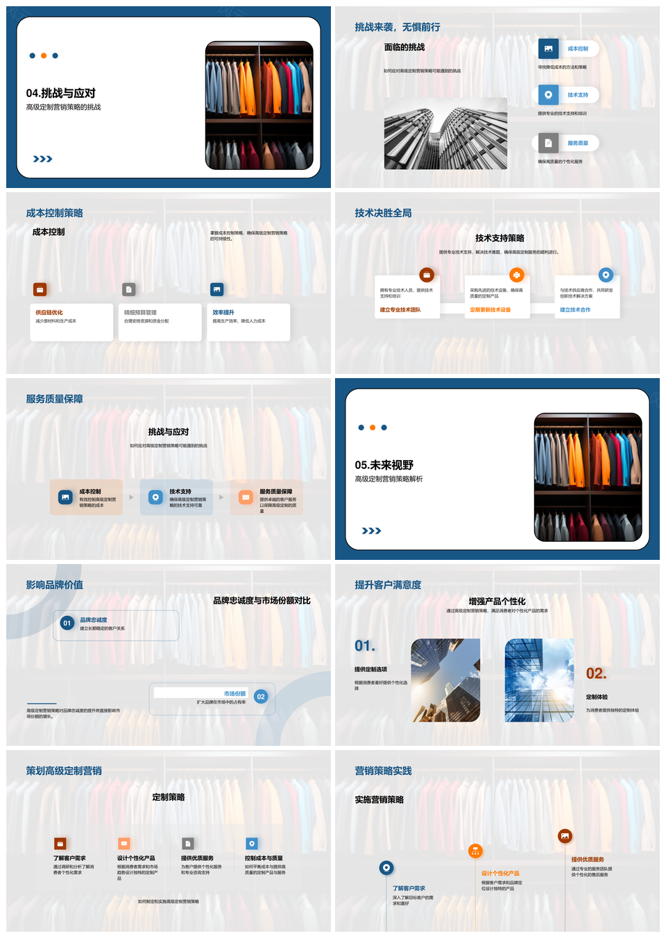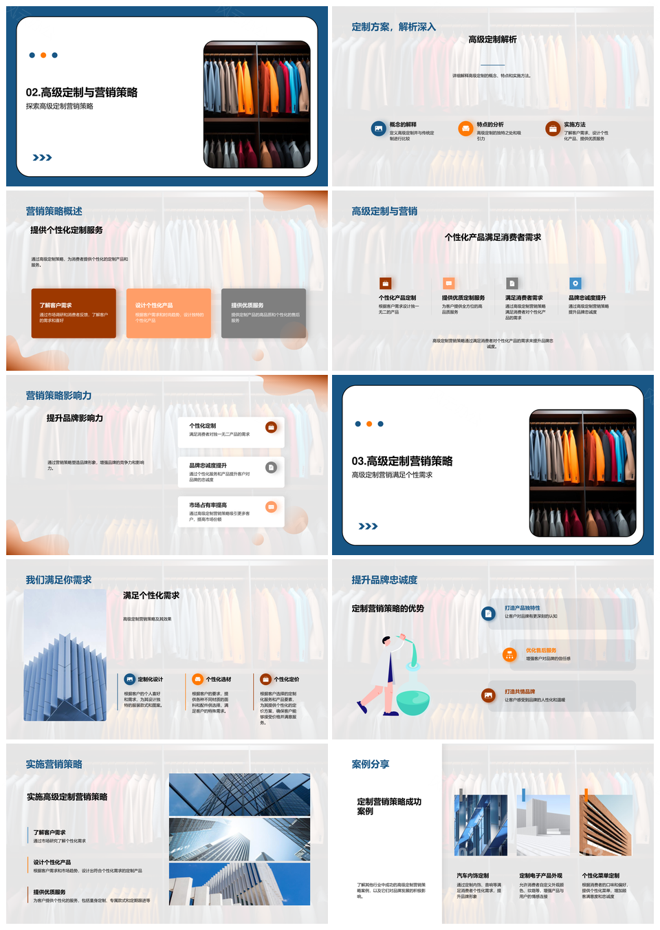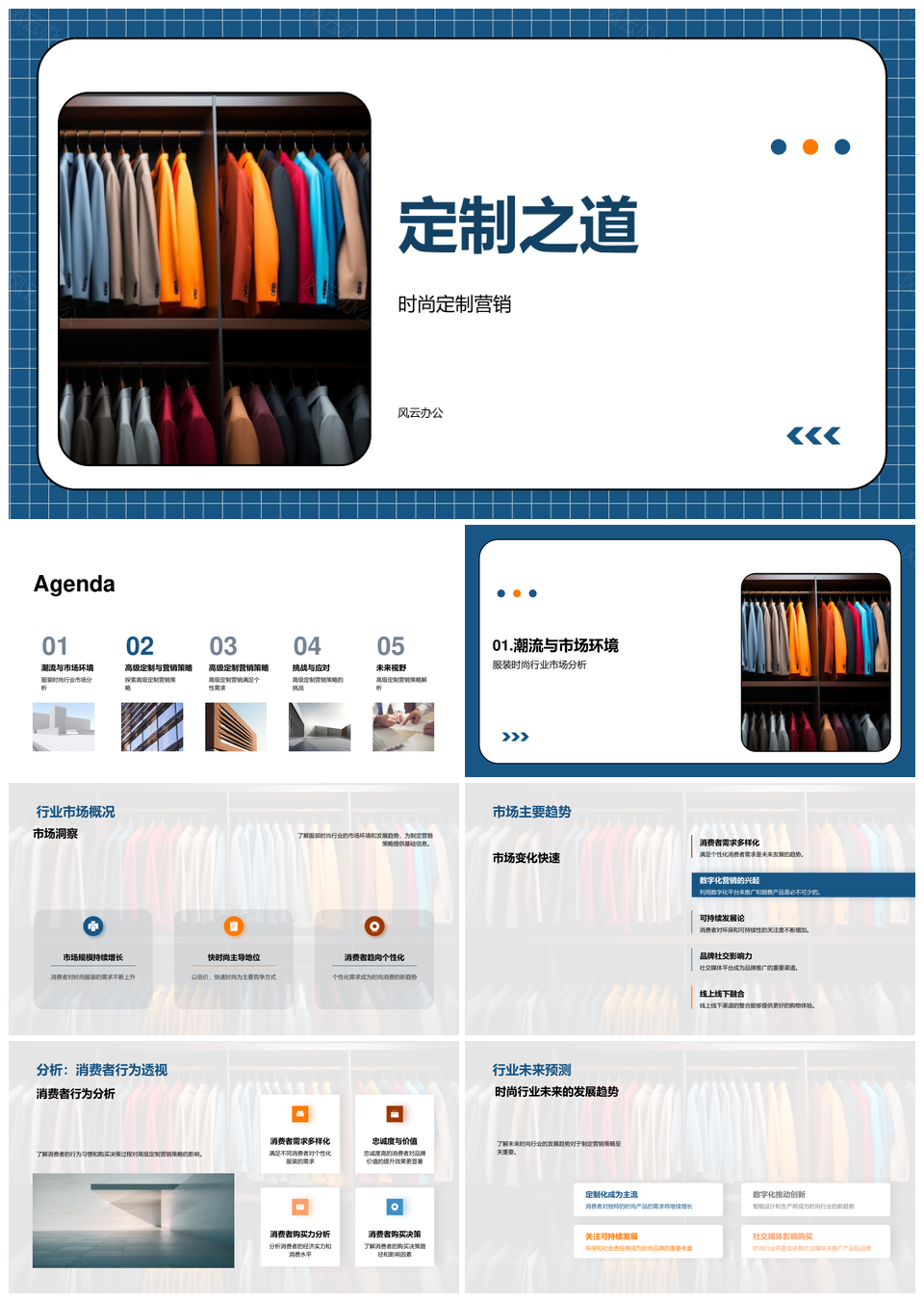 风云办公提供的时尚服装行业定制之道与营销策略PPT模板,下载格式为pptx,一共28页,作品中文字及图均可以修改和编辑,图片更改请在作品中右键图片并更换,文字修改请直接点击文字进行修改。