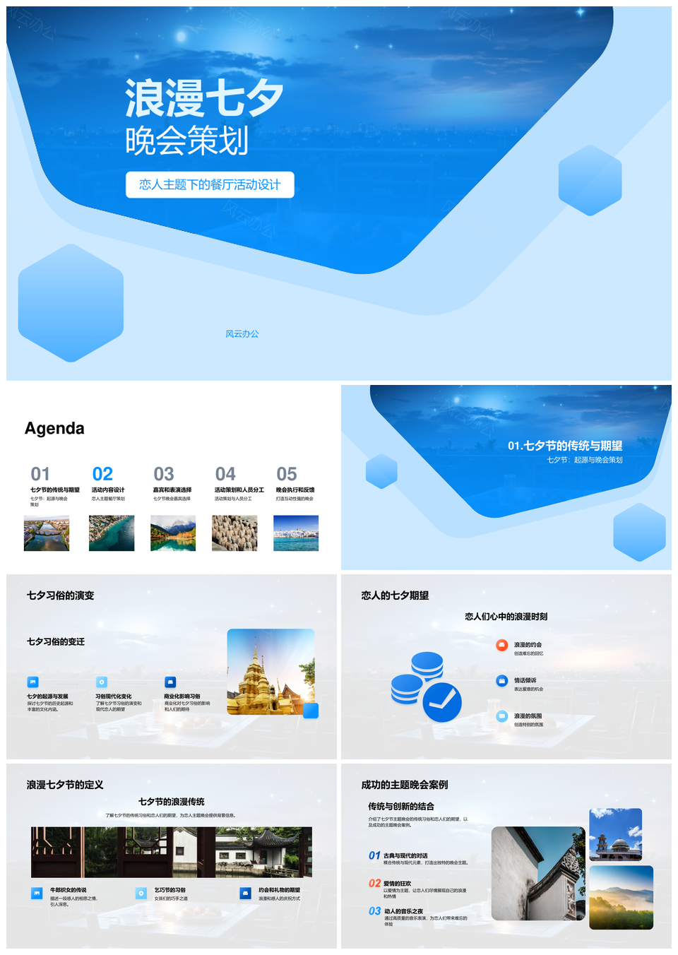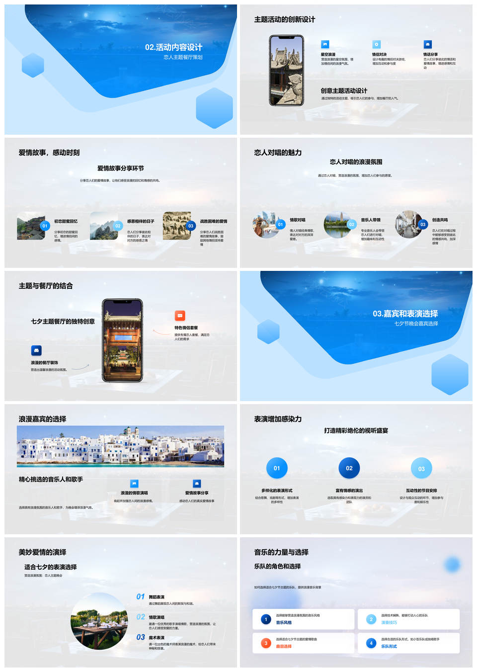 七夕主题餐厅恋人繁星对唱爱情故事晚会策划PPT模板推荐