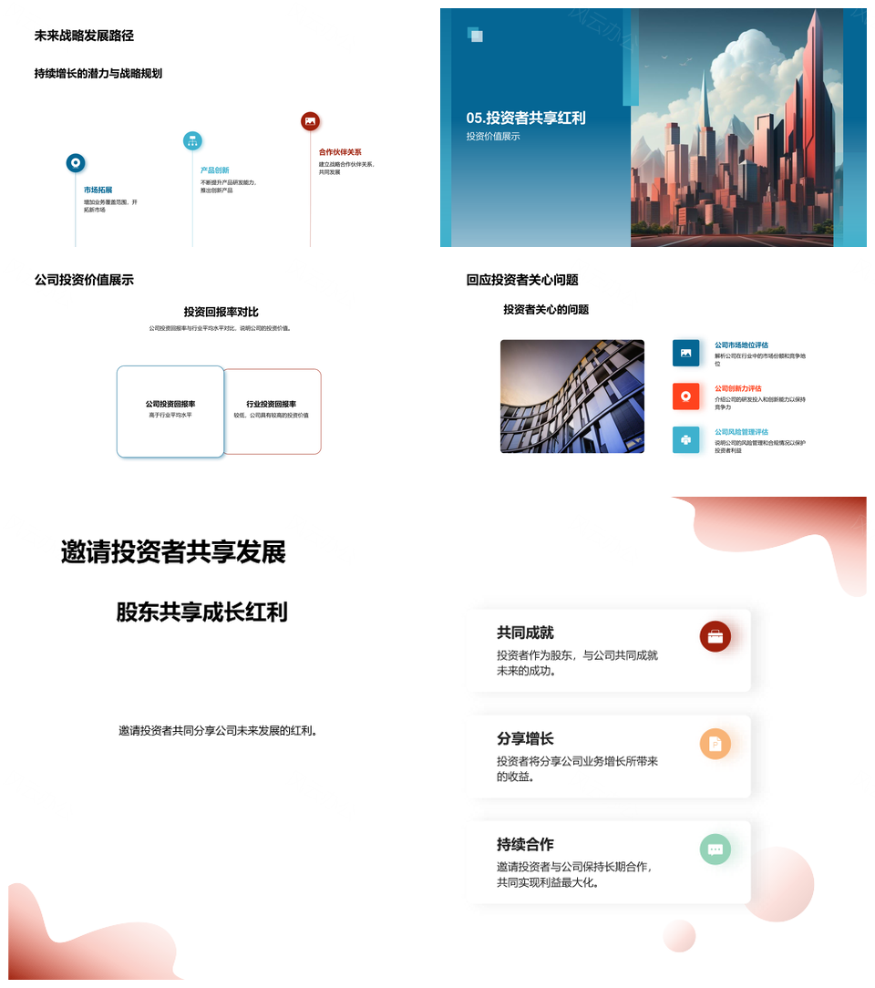 这是一张公司增长策略财务展望核心竞争力差异化发展PPT模板,包含公司、增长策略、财务展望、核心竞争力、差异化发展等主题内容,也可用作公司增长策略财务展望、公司财务增长策略、增长策略财务展望、核心竞争力差异化发展策略、公司核心竞争力发展策略、公司核心竞争力差异化发展、公司增长策略、财务增长策略、核心竞争力差异化发展、差异化发展策略、公司核心竞争力发展、公司财务展望、差异化发展核心竞争力、增长策略财务、财务增长展望等PPT场景使用。 风云办公提供的公司增长策略财务展望核心竞争力差异化发展PPT模板,下载格式为pptx,一共23页,作品中文字及图均可以修改和编辑,图片更改请在作品中右键图片并更换,文字修改请直接点击文字进行修改。