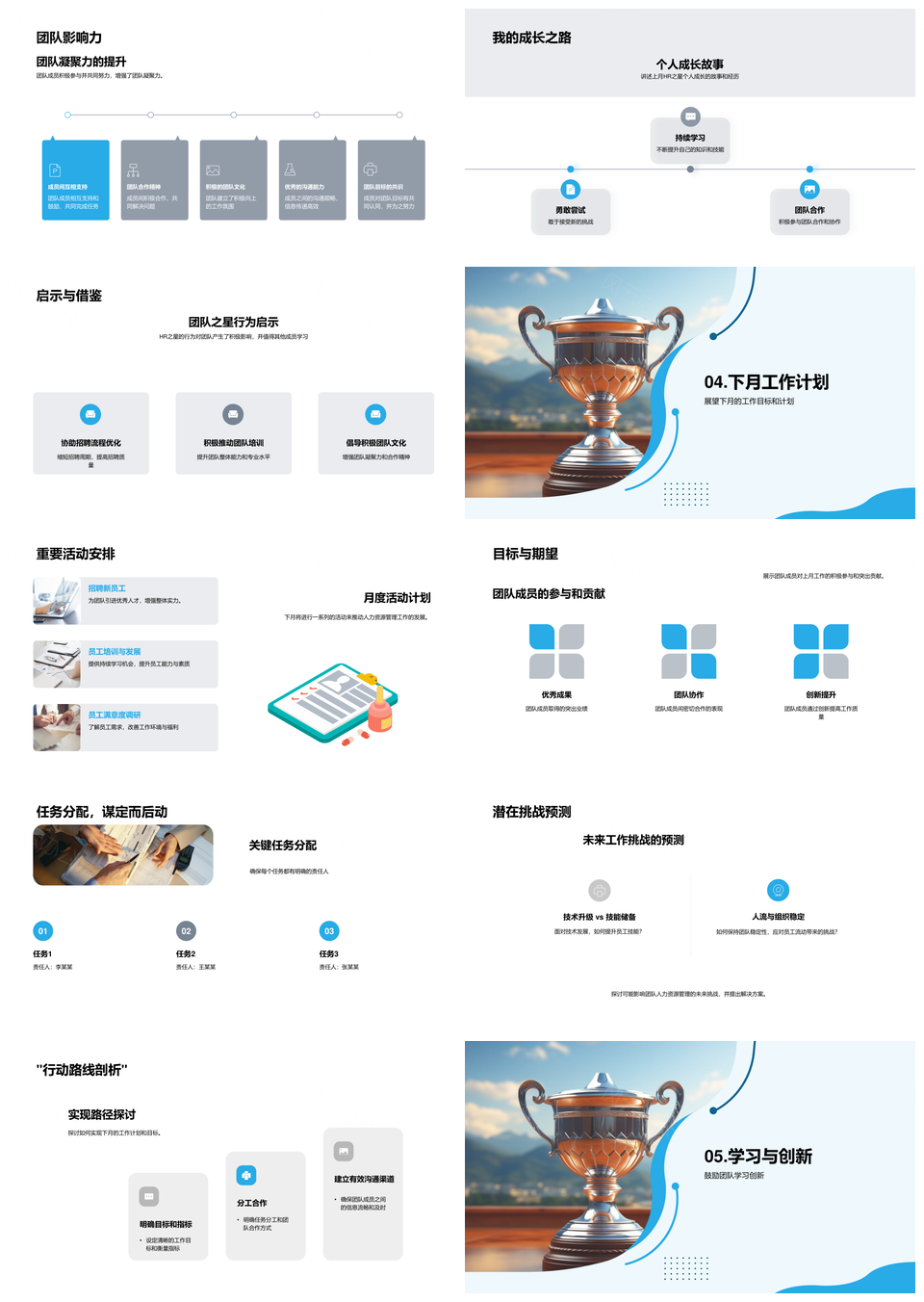 这是一张HR团队月度绩效培训招聘之星荣誉奖杯PPT模板,包含HR团队、月度绩效、培训、招聘之星、荣誉奖杯等主题内容,也可用作HR团队月度绩效培训招聘之星、HR团队绩效培训招聘之星荣誉、月度绩效培训招聘之星荣誉、HR团队培训招聘之星荣誉奖杯、绩效培训招聘之星荣誉奖杯、月度培训招聘之星荣誉奖杯、HR团队月度绩效招聘之星、月度绩效招聘之星荣誉奖杯、HR团队招聘之星荣誉奖杯、绩效培训招聘之星荣誉、月度绩效培训招聘之星、HR团队月度绩效培训、HR团队月度绩效荣誉、绩效培训荣誉奖杯、月度绩效荣誉奖杯等PPT场景使用。 风云办公提供的HR团队月度绩效培训招聘之星荣誉奖杯PPT模板,下载格式为pptx,一共33页,作品中文字及图均可以修改和编辑,图片更改请在作品中右键图片并更换,文字修改请直接点击文字进行修改。