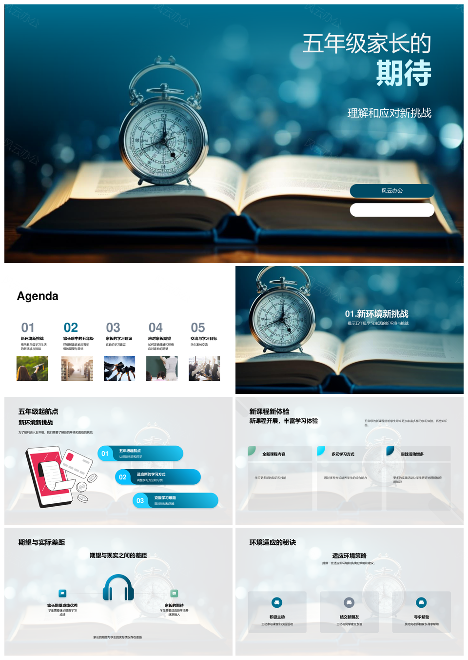 五年级家长新挑战起航学业期许角色转变PPT模板推荐