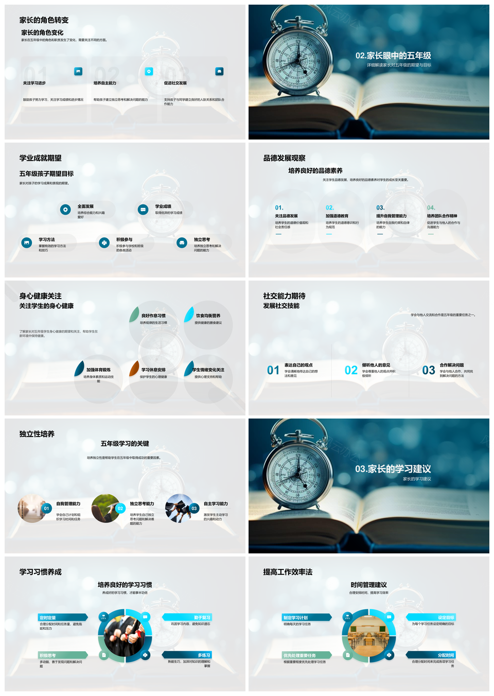 这是一张五年级家长新挑战起航学业期许角色转变PPT模板,包含五年级、家长、新挑战、起航、学业、期许、角色、转变等主题内容,也可用作五年级家长新挑战、家长新挑战起航、新挑战起航学业期许、起航学业期许角色转变、五年级家长新挑战起航、五年级家长起航学业期许、家长新挑战学业期许角色转变、五年级起航学业期许角色转变、家长新挑战角色转变、学业期许角色转变五年级、新挑战起航角色转变、五年级学业期许角色转变、家长起航角色转变、新挑战学业期许五年级、起航角色转变五年级等PPT场景使用。 风云办公提供的五年级家长新挑战起航学业期许角色转变PPT模板,下载格式为pptx,一共33页,作品中文字及图均可以修改和编辑,图片更改请在作品中右键图片并更换,文字修改请直接点击文字进行修改。