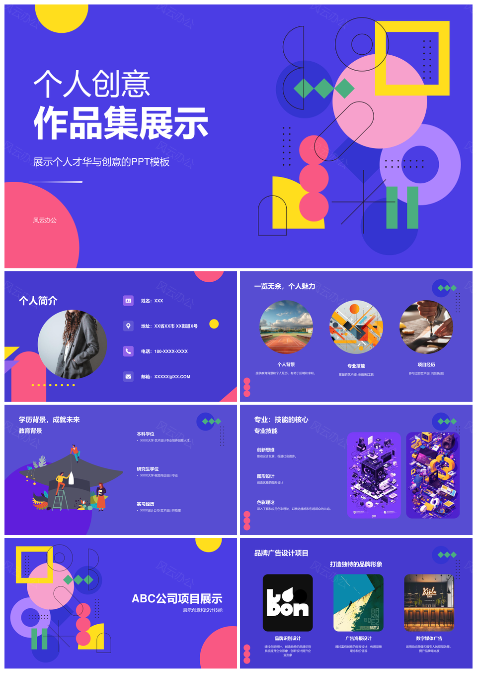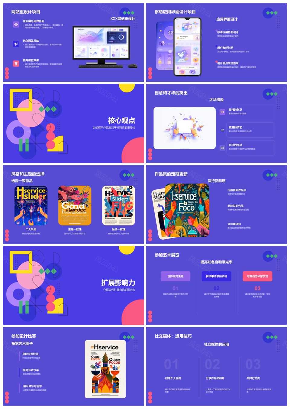 风云办公提供的扁平几何艺术设计插画应聘作品集展示PPT模板,下载格式为pptx,一共18页,作品中文字及图均可以修改和编辑,图片更改请在作品中右键图片并更换,文字修改请直接点击文字进行修改。
