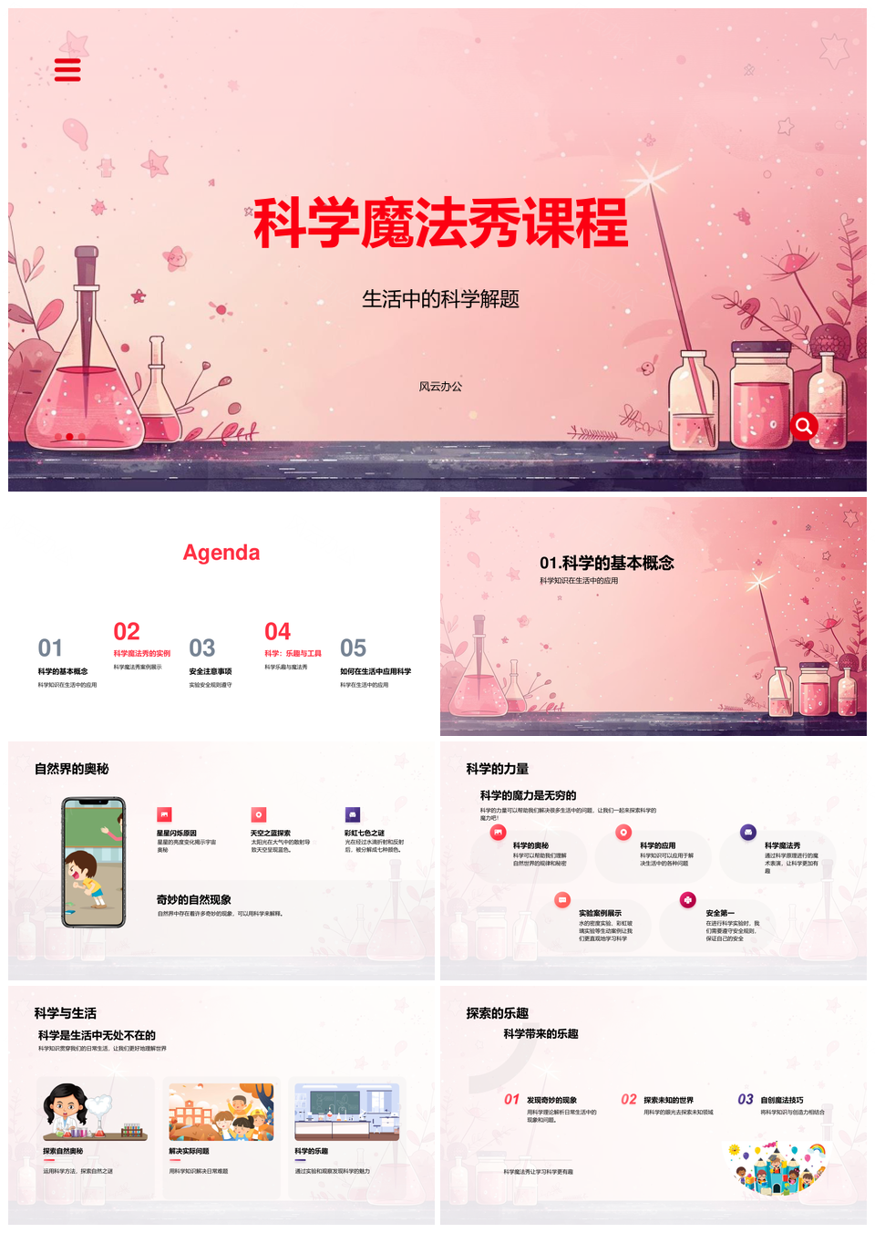 风云办公提供的科学魔法秀课程生活科学实验安全实例PPT模板,下载格式为pptx,一共28页,作品中文字及图均可以修改和编辑,图片更改请在作品中右键图片并更换,文字修改请直接点击文字进行修改。