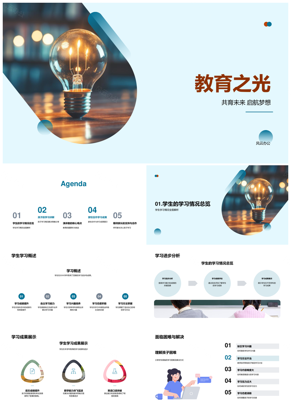 风云办公提供的教育之光启航梦想共育学习进步未来PPT模板,下载格式为pptx,一共24页,作品中文字及图均可以修改和编辑,图片更改请在作品中右键图片并更换,文字修改请直接点击文字进行修改。
