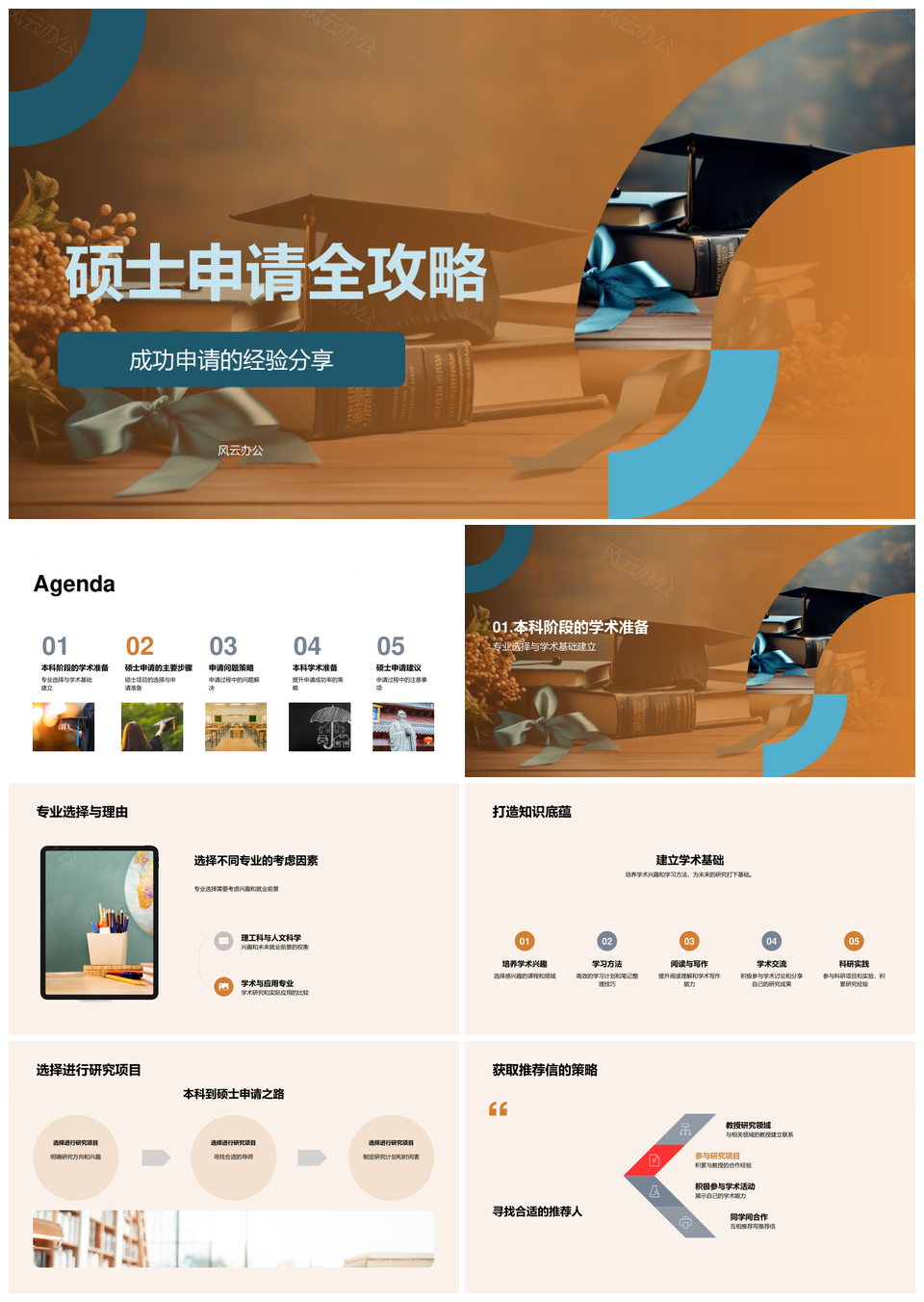 硕士申请学术研究推荐信专业选择材料文书面试攻略PPT模板推荐