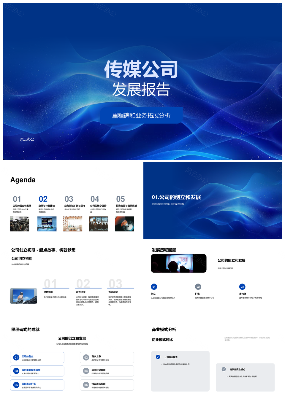 传媒公司发展里程碑业务拓展竞争优势报告PPT模板推荐