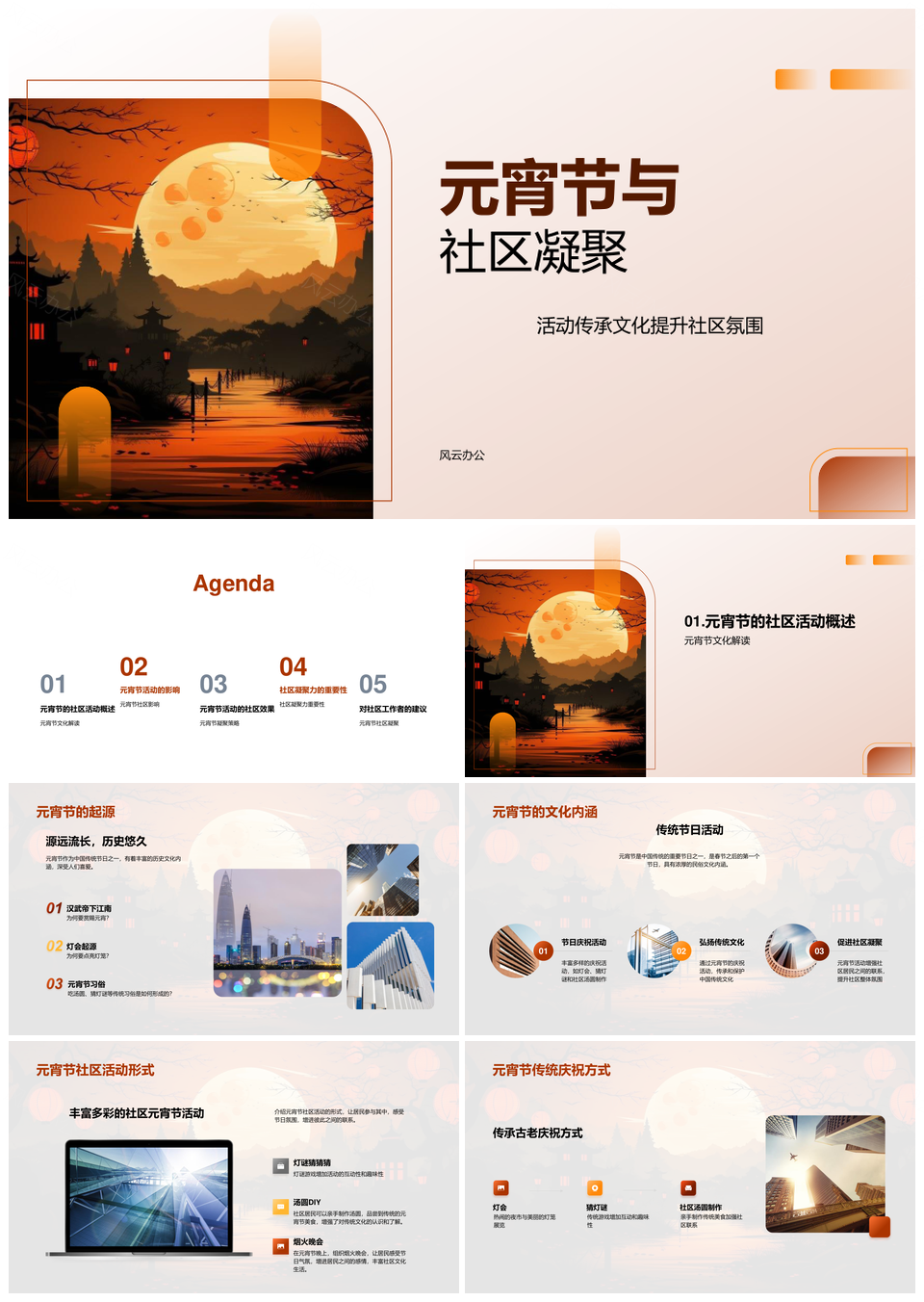 元宵节媒体社区互动灯笼传承多元文化PPT模板