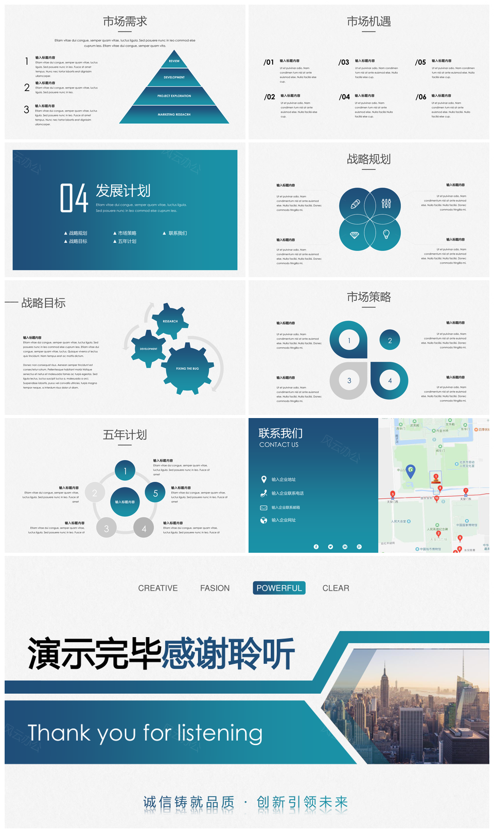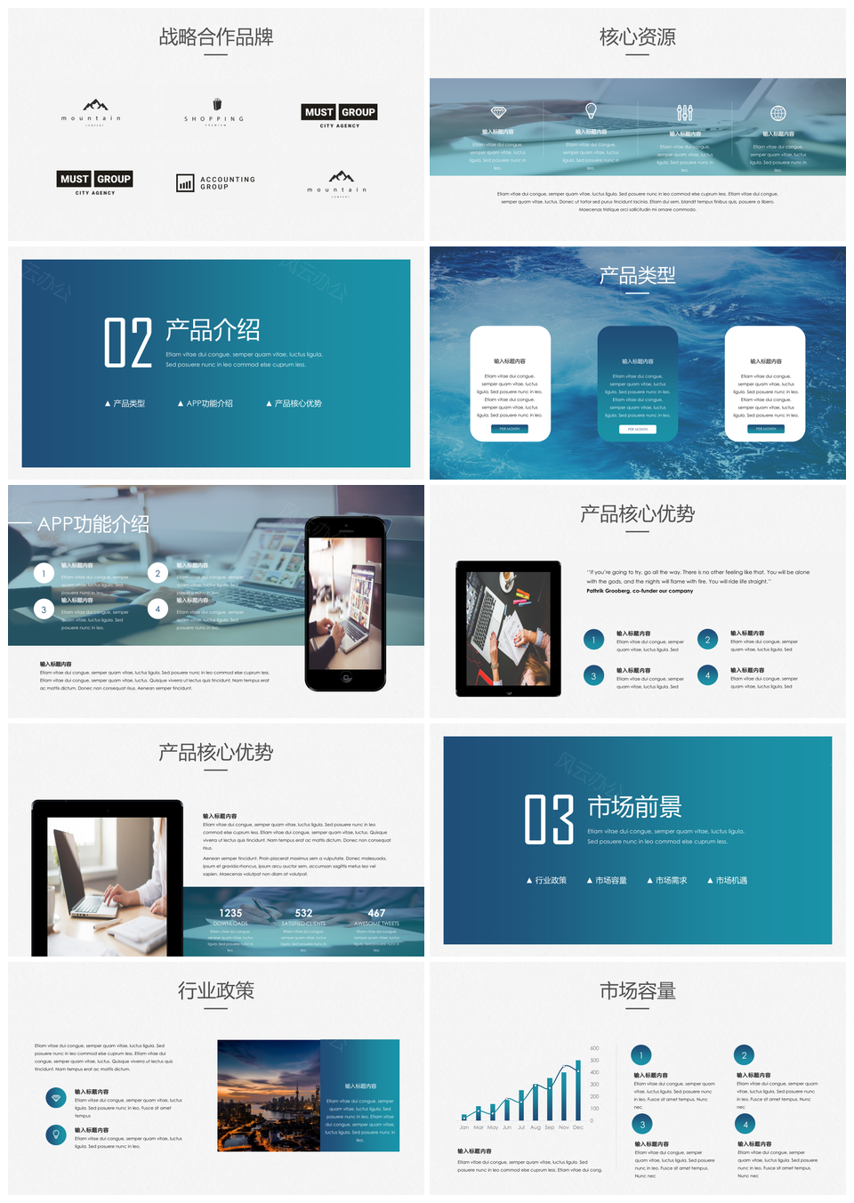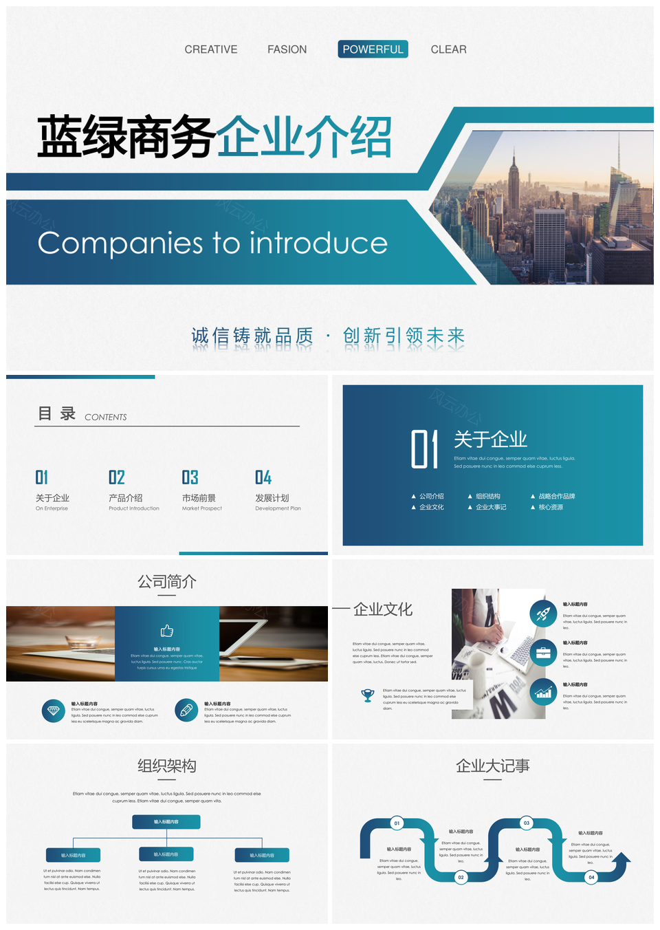 蓝色经典蓝绿商务风公司介绍企业宣传PPT模板