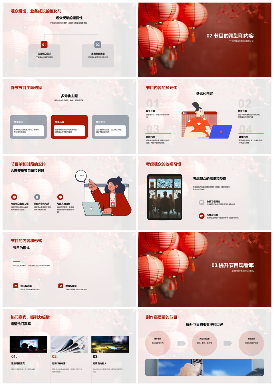春晚策划融合历史习俗嘉宾互动灯笼赢口碑PPT模板推荐