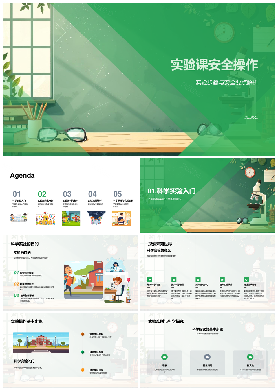 风云办公提供的科学实验安全操作步骤装备规则教育PPT模板,下载格式为pptx,一共27页,作品中文字及图均可以修改和编辑,图片更改请在作品中右键图片并更换,文字修改请直接点击文字进行修改。