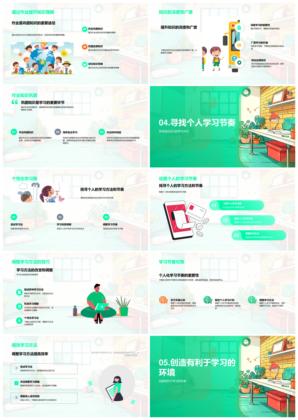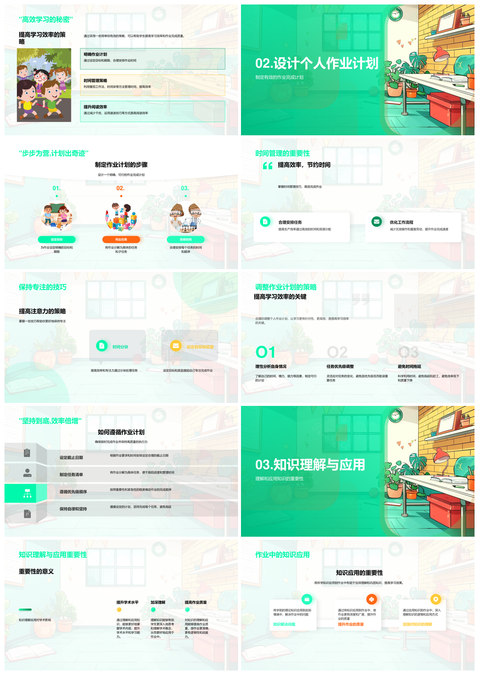 作业提效策略学习效率时间管理知识应用专注力PPT模板推荐