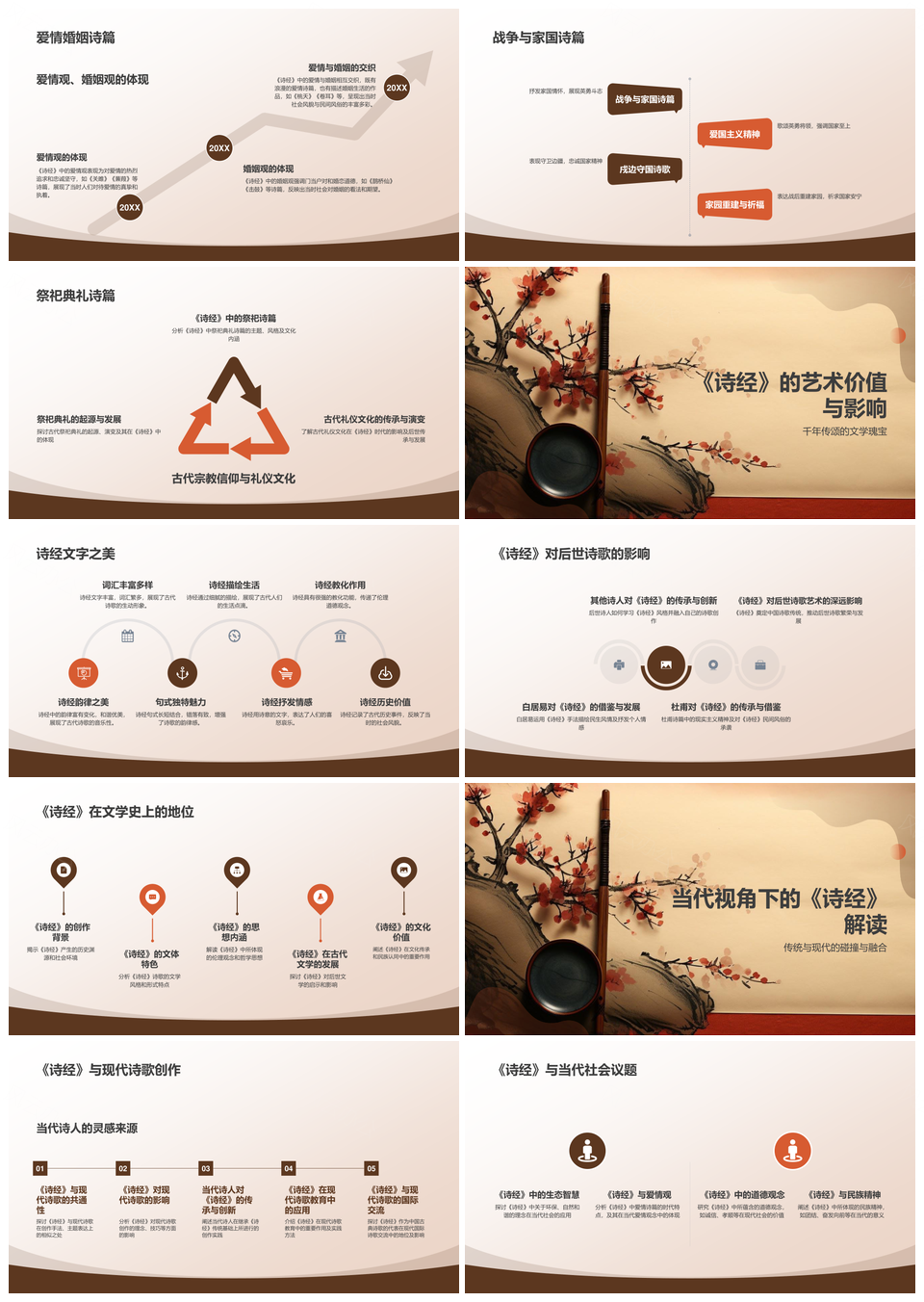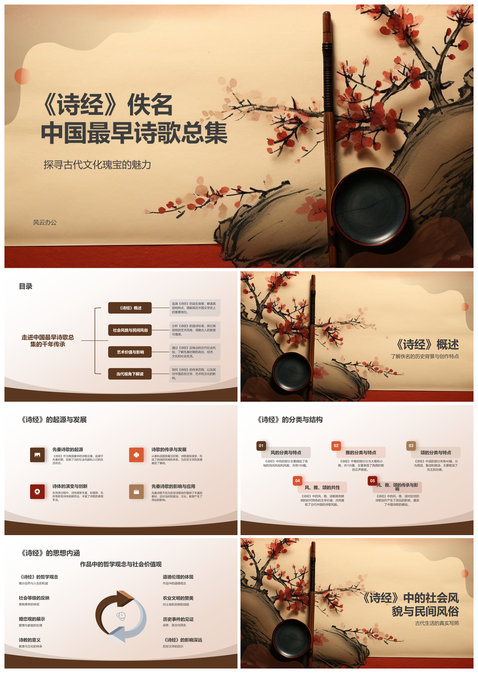风云办公提供的诗经静物装饰毛笔桌案壁纸特写图像PPT模板,下载格式为pptx,一共20页,作品中文字及图均可以修改和编辑,图片更改请在作品中右键图片并更换,文字修改请直接点击文字进行修改。