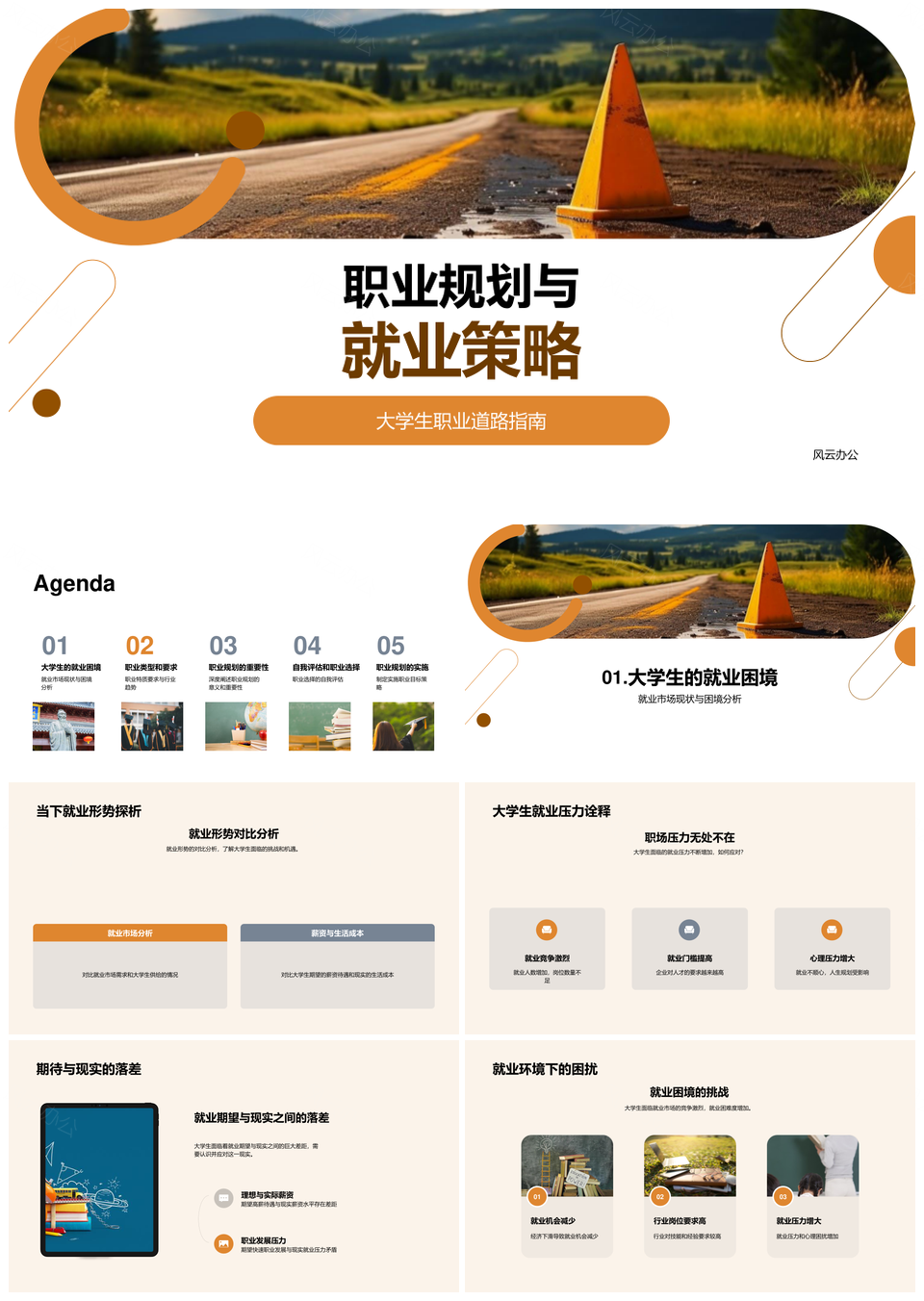 大学生职业规划就业策略与行业技能市场趋势PPT模板推荐