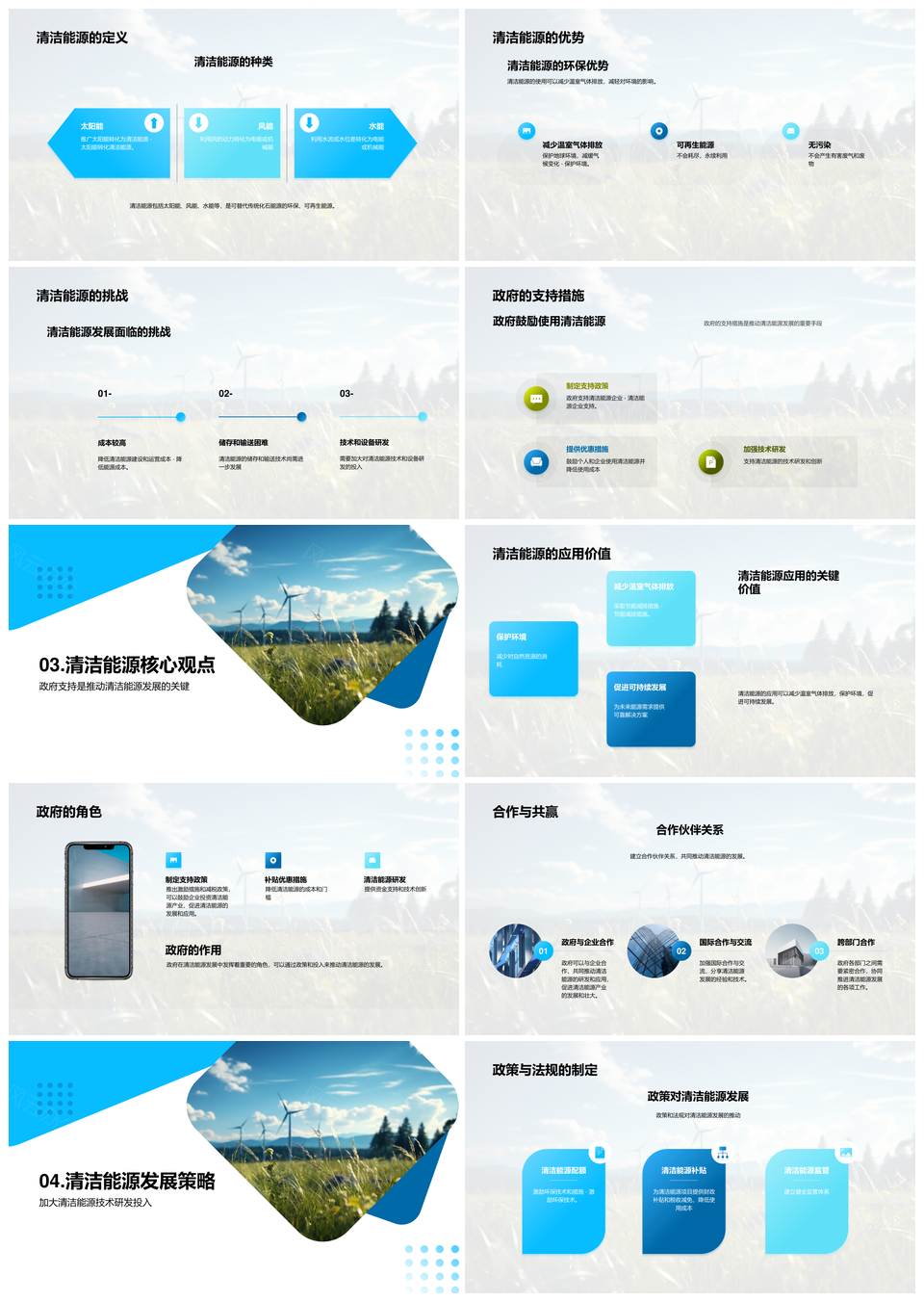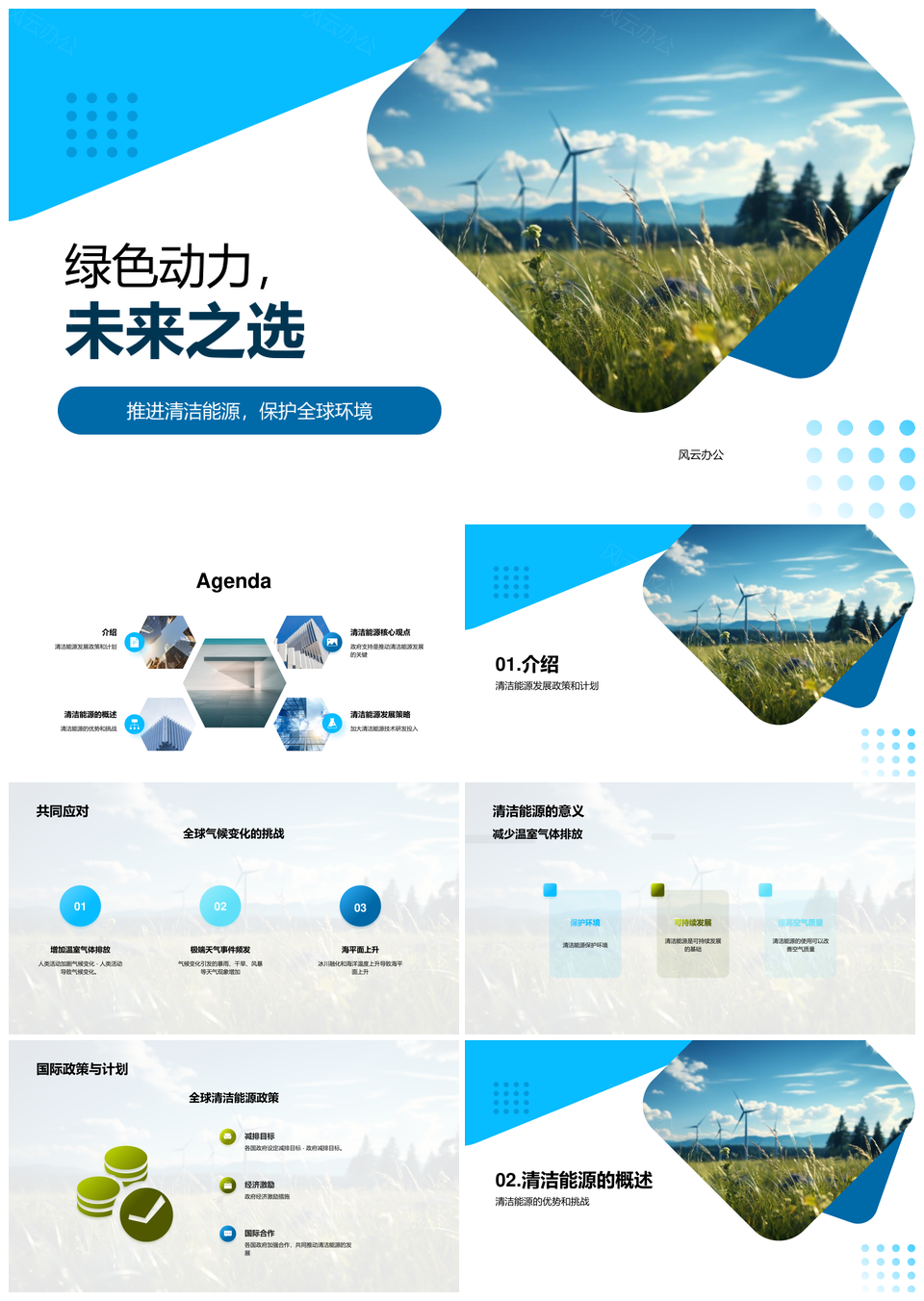 风云办公提供的清洁能源政策规划减排放护气候未来PPT模板,下载格式为pptx,一共20页,作品中文字及图均可以修改和编辑,图片更改请在作品中右键图片并更换,文字修改请直接点击文字进行修改。