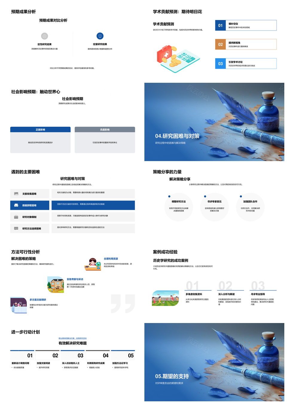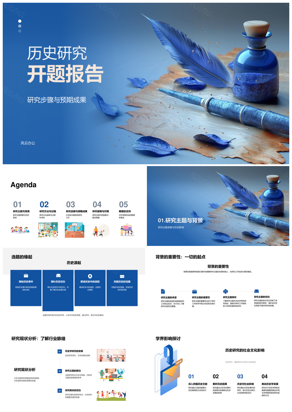 历史研究开题报告背景主题方法步骤过程成果PPT模板推荐