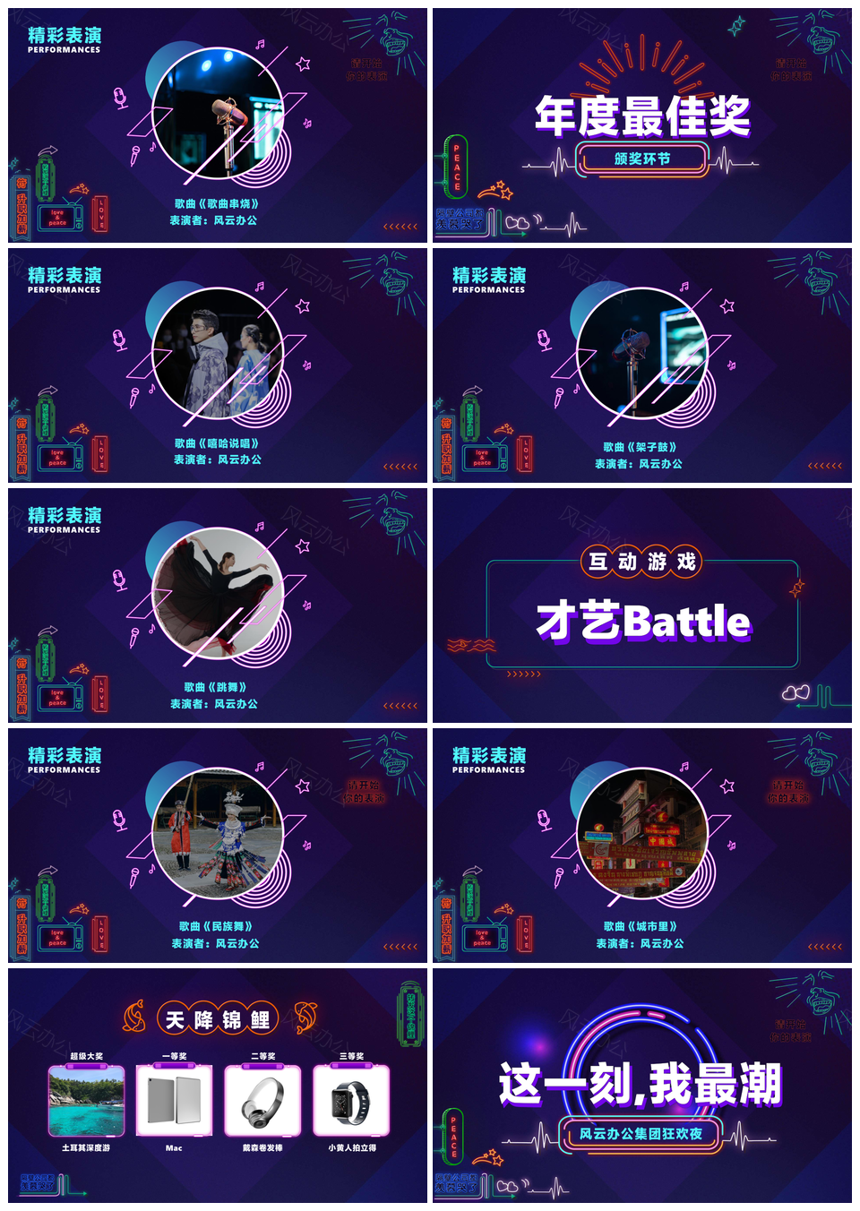 风云办公提供的2025炫酷霓虹狂欢年会盛典PPT模板,下载格式为pptx,一共18页,作品中文字及图均可以修改和编辑,图片更改请在作品中右键图片并更换,文字修改请直接点击文字进行修改。