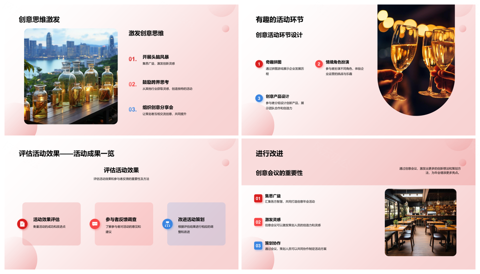 这是一张商务企业年会创意趣味创新活动策划PPT模板,包含商务企业、年会、创意、趣味、创新、活动、策划等主题内容,也可用作商务企业年会创意趣味活动策划、商务企业创意趣味创新活动、企业年会趣味创新活动策划、年会创意趣味创新活动、创意趣味创新活动策划、企业年会创意创新活动、商务趣味创新活动策划、年会趣味创新活动、创意创新活动策划、商务企业创意活动、企业趣味活动策划、年会创新活动、趣味活动策划、企业活动策划、活动策划等PPT场景使用。
