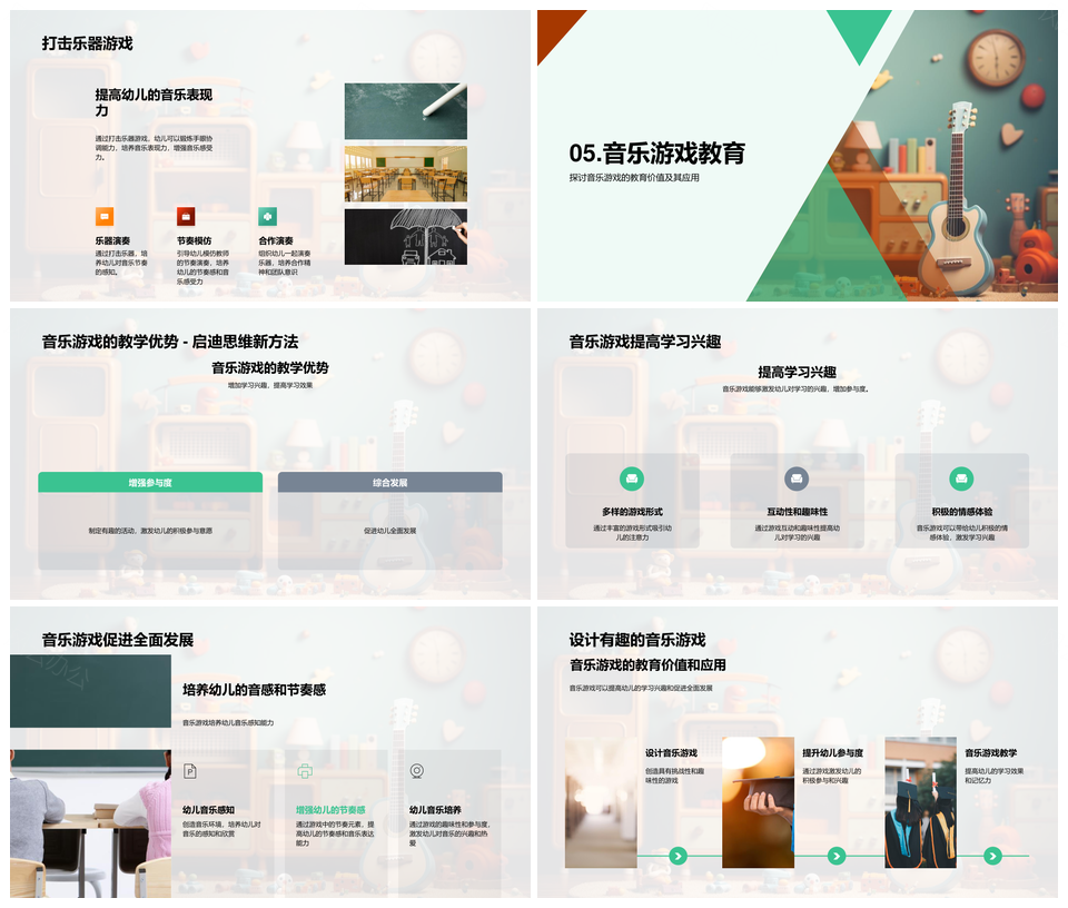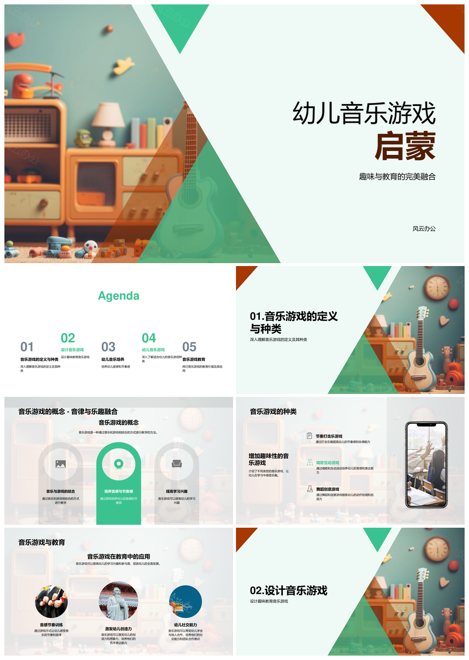 风云办公提供的幼儿音乐游戏启蒙音感节奏趣味教育PPT模板,下载格式为pptx,一共24页,作品中文字及图均可以修改和编辑,图片更改请在作品中右键图片并更换,文字修改请直接点击文字进行修改。