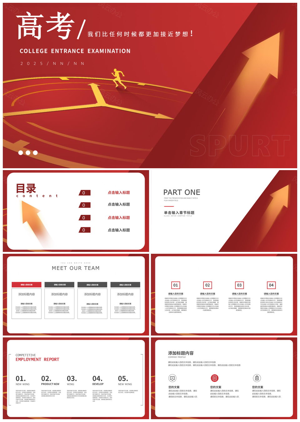 2025红色简约高考冲刺必胜高中生考试加油PPT模板推荐