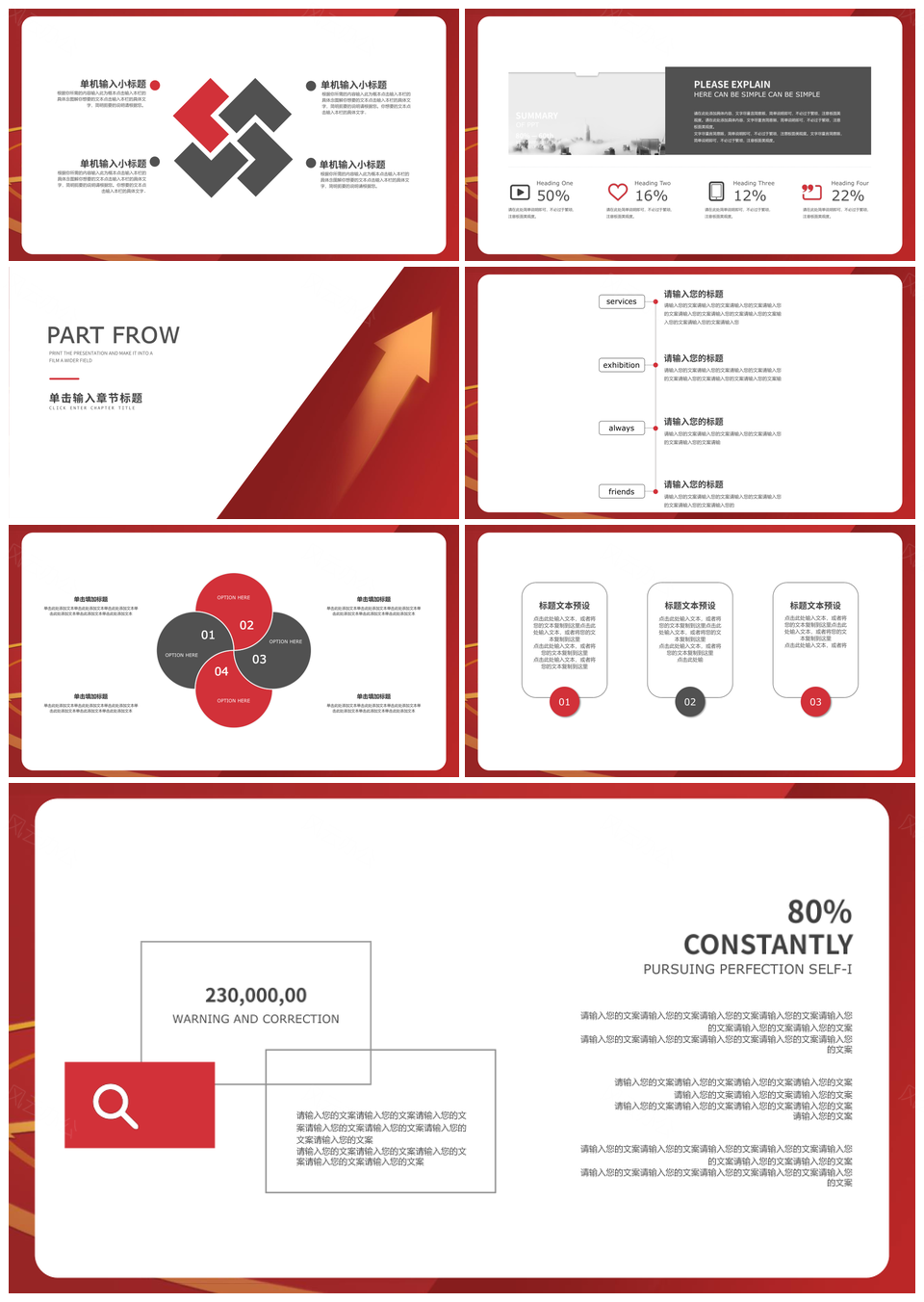 红色简约全面PPT