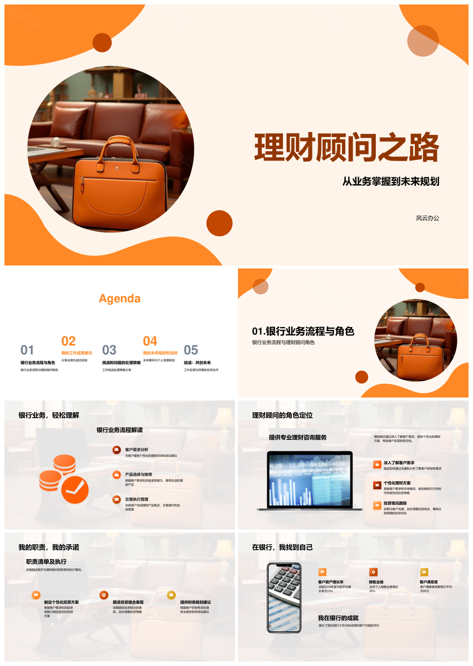 风云办公提供的理财顾问银行业务职责成就挑战案例PPT模板,下载格式为pptx,一共27页,作品中文字及图均可以修改和编辑,图片更改请在作品中右键图片并更换,文字修改请直接点击文字进行修改。