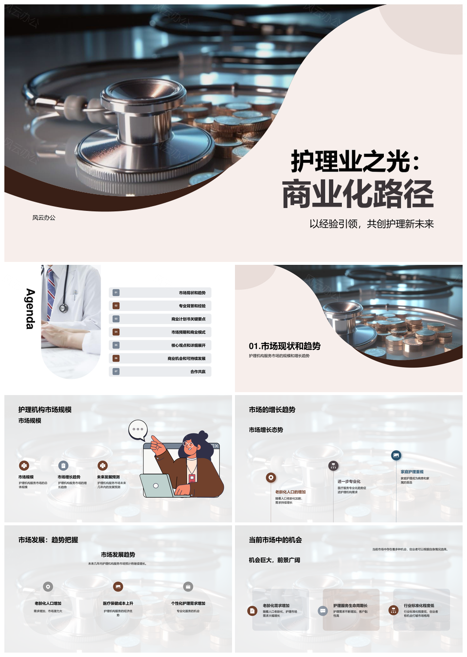 风云办公提供的护理创业投资生物医疗市场增长机遇PPT模板,下载格式为pptx,一共40页,作品中文字及图均可以修改和编辑,图片更改请在作品中右键图片并更换,文字修改请直接点击文字进行修改。